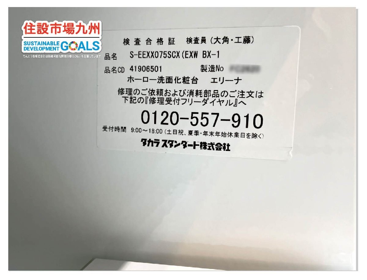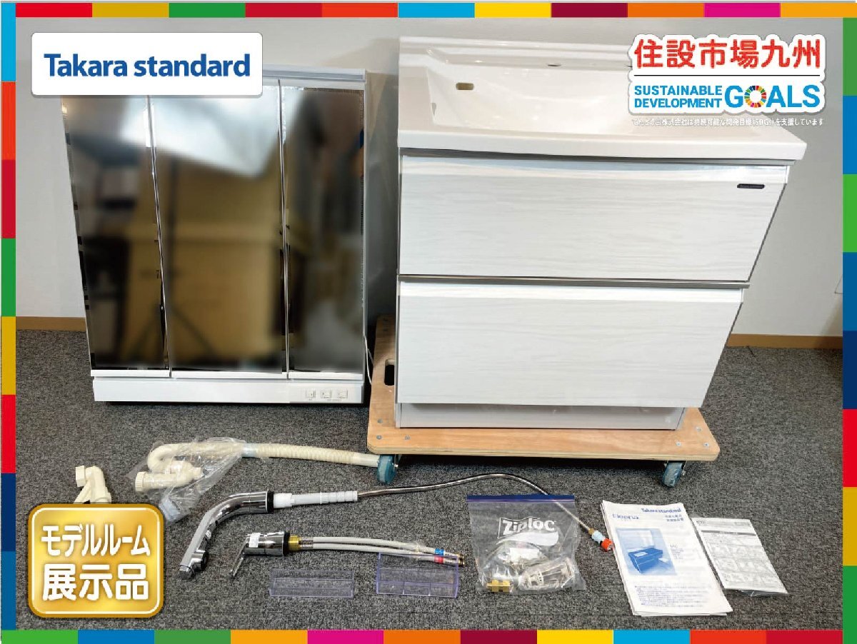 【福岡】W750 洗面化粧台 タカラスタンダード エリ―ナ ホーロー・水栓・三面鏡・カプラー付 W750 H1765 D600 モデルR展示設置品◆ASJ6_Yt