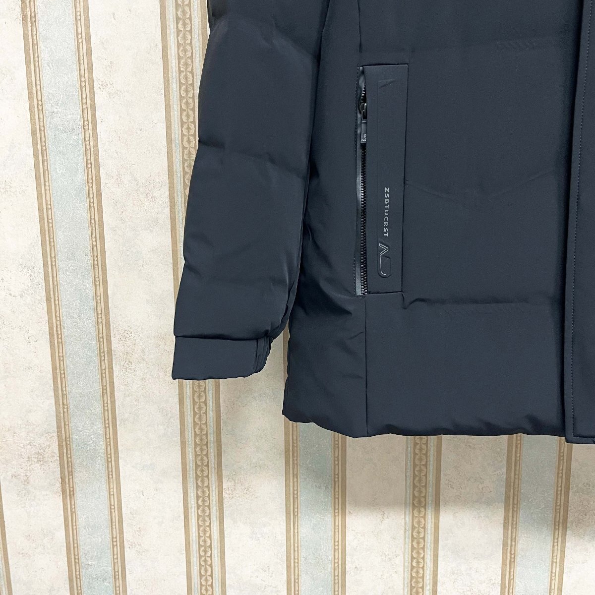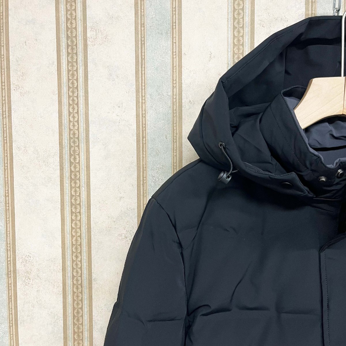 ボディーは自社で厳選された高級なダックダウンを使用しており、体を包み込むような柔らかな着用感があり、保温性が高く春秋冬の季節に暖かいダウンジャケットとなりました。表地には高密度素材を使用して、防風防寒性がアップしてくれ、耐久性にも優れて長い間にお使いいただけます。