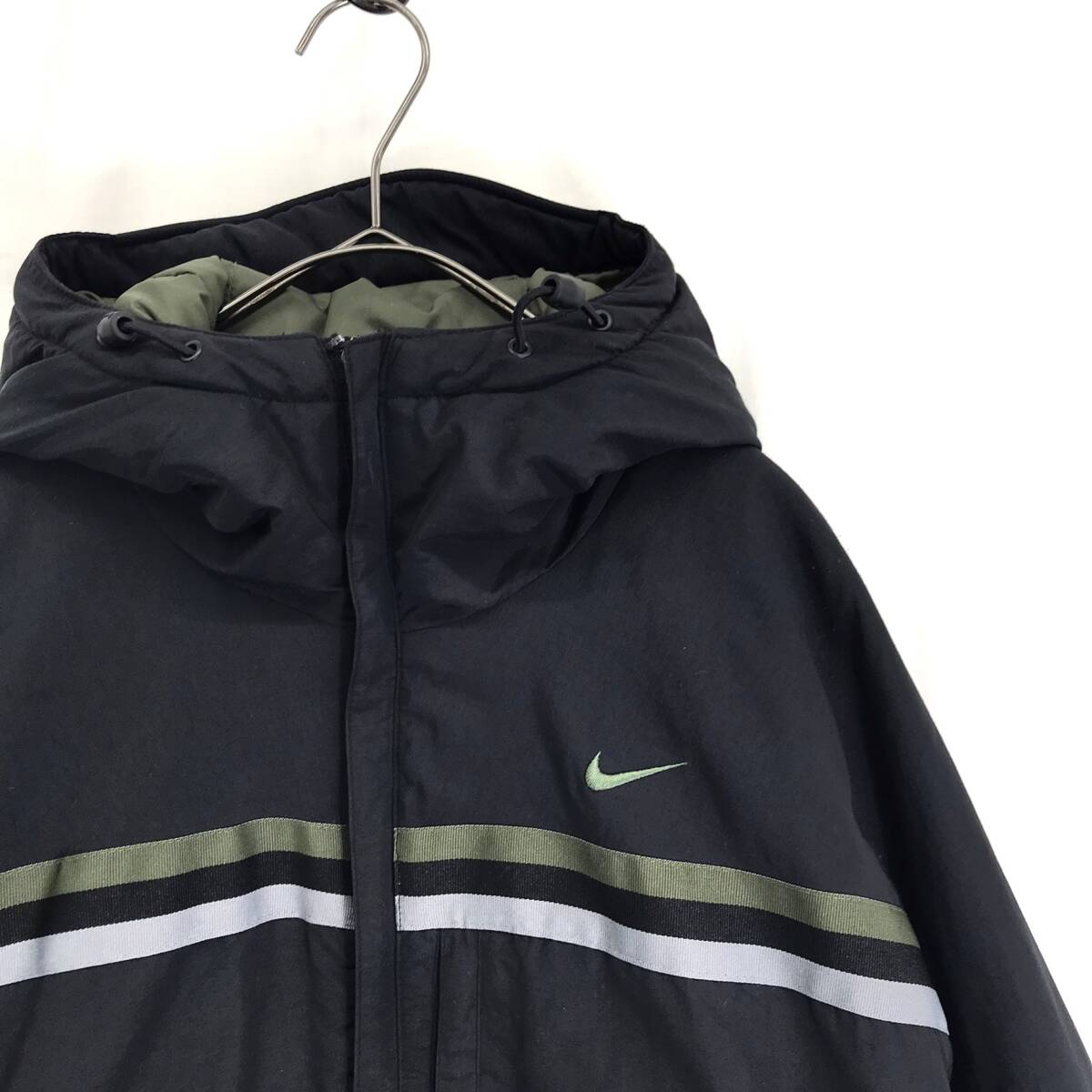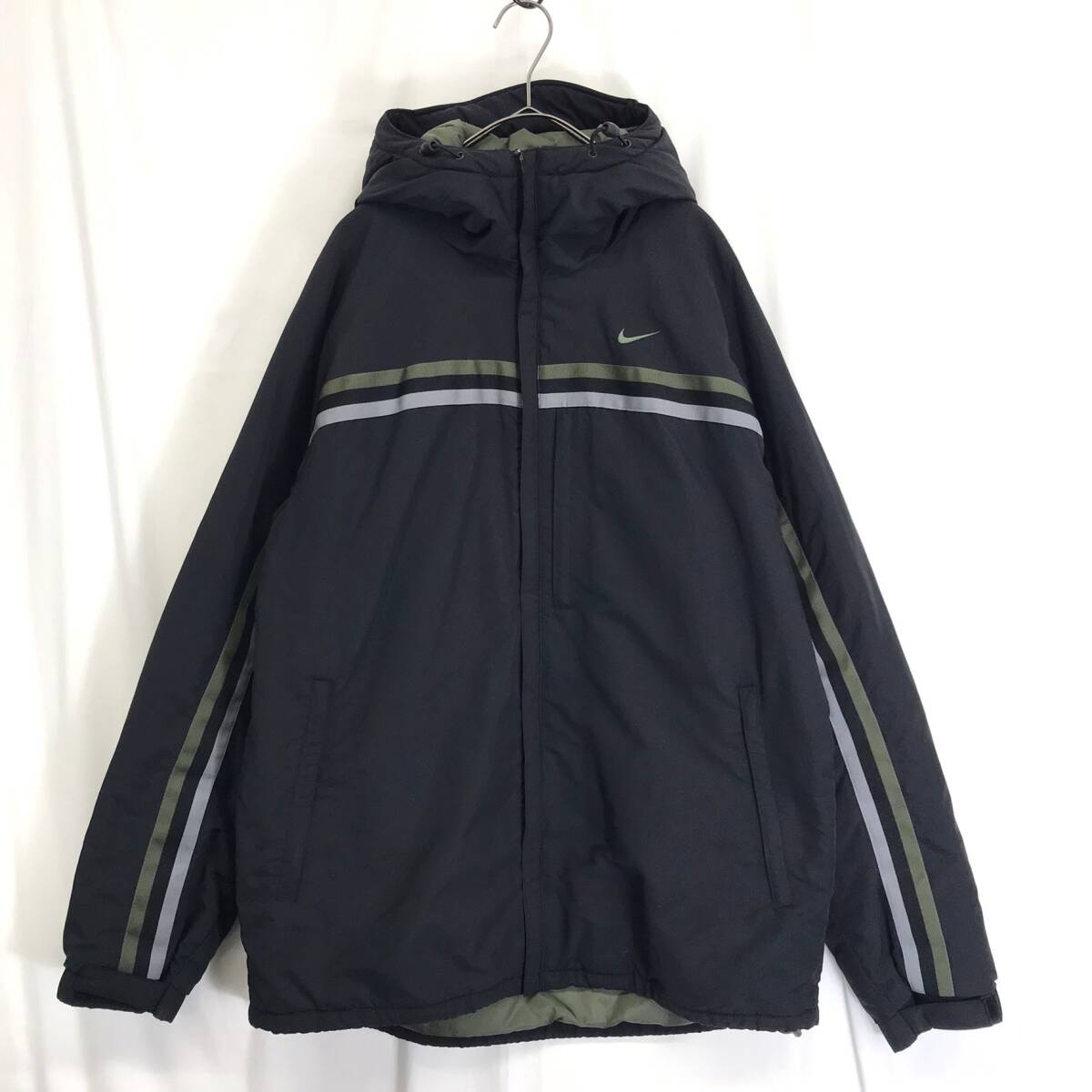 KZ9125★NIKE : 00's 中綿 ナイロンジャケット★L★黒 フーディ パーカー ナイキ