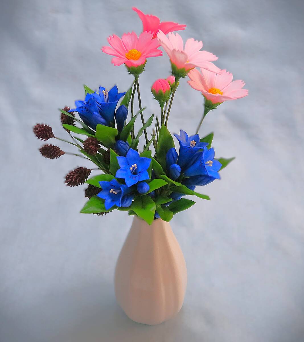 | 商品説明 | 完全ハンドメイドのパンフラワー/アートフラワーとなります。 りんどうにコスモス、われもこうを合わせた、和風の優しい感触のアレンジ作品となります。落ち着きある優しい感触の作品です。(花器は既製品を使用しております) また本作品につきまして光触媒コート処理を行い、除菌、防臭、防汚等の機能を追加しました。専用の光触媒素材を使用しておりますので、高機能かつ作品の色彩や質感は全く変わらず、勿論人体にも完全に無害です。 【作品詳細】 アートフラワー/パンフラワー 彫塑用粘土(プロフェッショナルA)に油彩絵具で彩色した、鮮やかな竜胆に淡いコスモス(2色)と、われもこうを合わせた秋のアレンジメント作品となります。優しく、落ち着いた感触の和風作品です。 大変質感も高く、遠目に見て生花と思える程リアルな出来栄えです。 1)サイズ:高さ/約30Cm:幅×奥行/約19Cm×19Cm:重量:約400g(作品全体の総重量) 2)素材:彫塑用粘土(プロフェッショナルA)に油彩絵具にて彩色 3)造形の安定性、耐久性に優れ、安定した造形と色彩の状態を長期間保ちます。 <お支払方法> ヤフーかんたん決済 <発送方法> 「ヤマト運輸着払い発送」 <注意事項> 制作者からの直接委託により新品となりますが、細かい点が気になる方は、入札を御遠慮願います。出品はあくまで作品につき花入れ(花瓶)はサービスでお付け致します。花入れにつきましてのご質問並びにご指摘等はご遠慮願います。(花入れは既製品を使用しています) 大きさ比較の画像に写っておりますマグカップは付属しませんのでご注意ください。 また格安価格での出品につきノークレーム/ノーリターンとさせて頂きます。 上記内容を御理解の上、入札をお願い申し上げます。  |