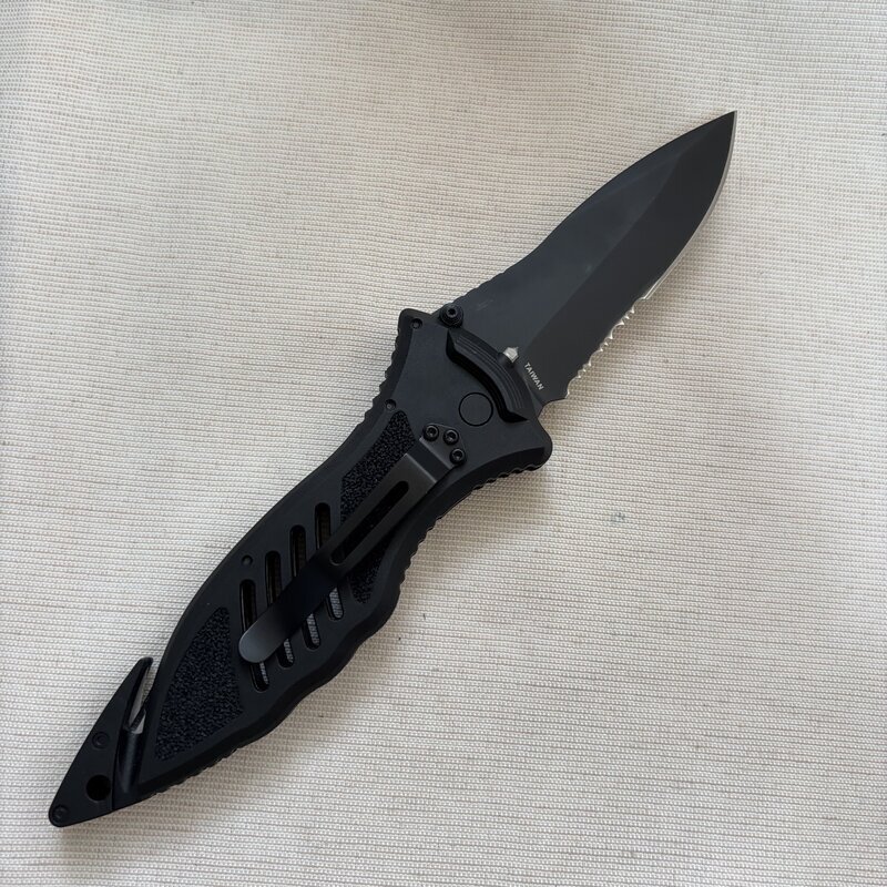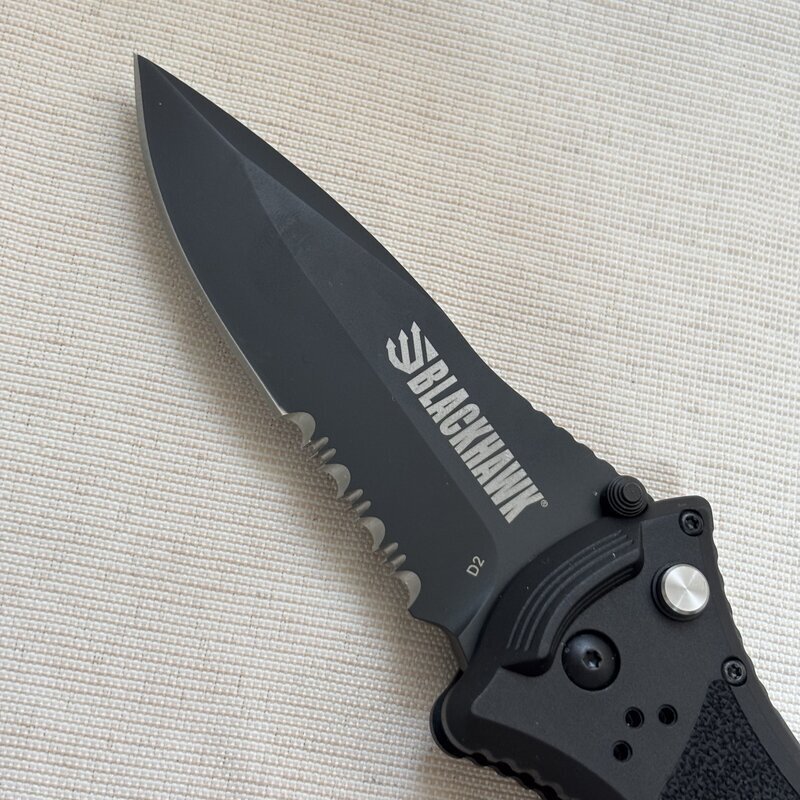 1~ デッドストック 希少 BLACKHAWK ブラックホーク BUTTON LOCK ボタンロック フォールディングナイフ セレーション D2鋼 IW509DK08BLK60