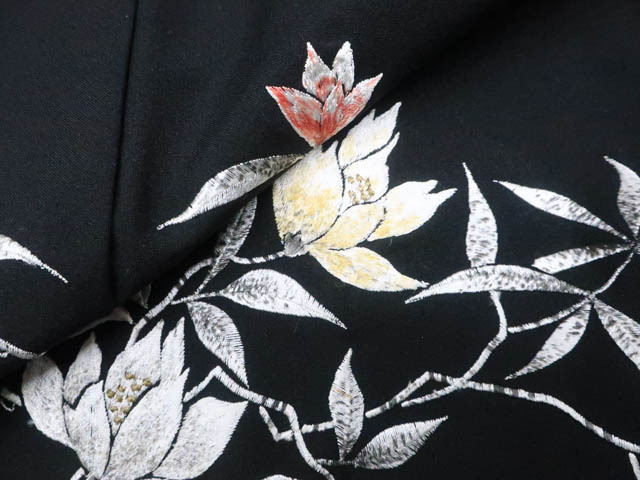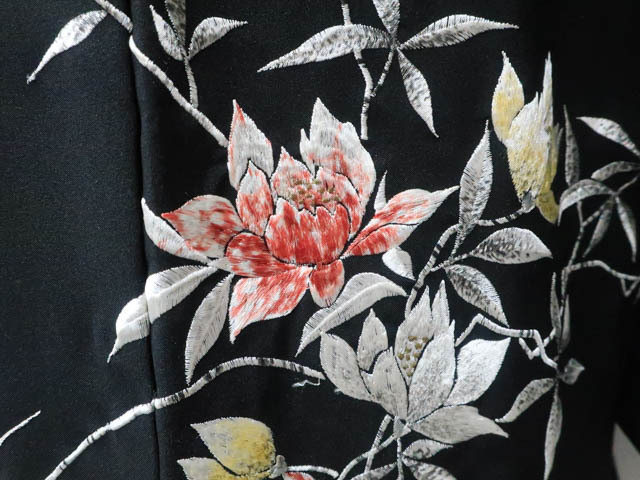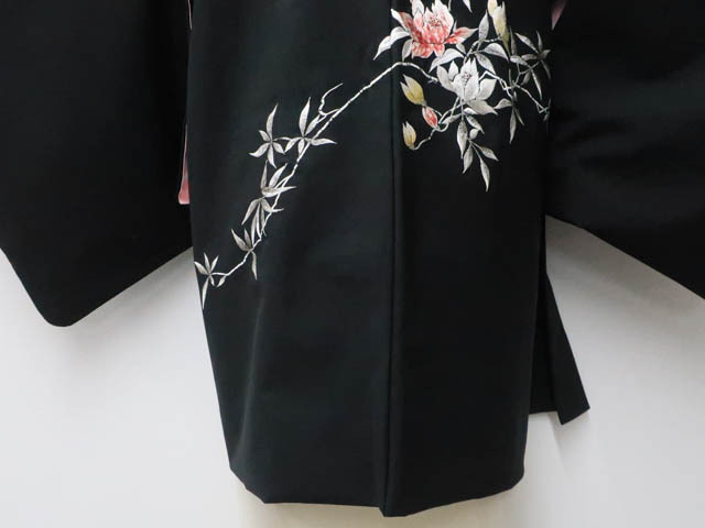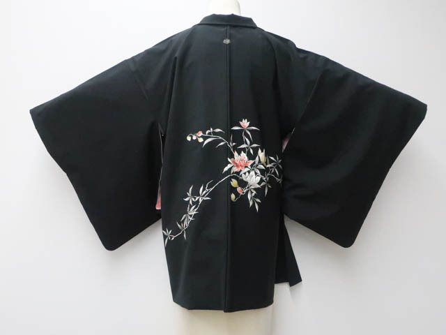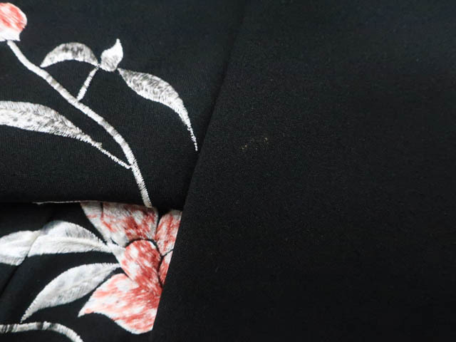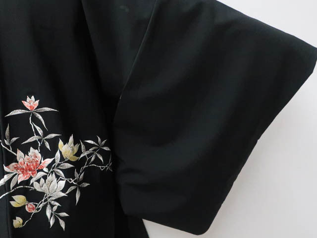 リサイクル商品のため、右前袖・裾返りに薄汚れと羽裏にスレがございますが着用可能なお品です。 地色は 黒です。 1枚目の画像が近いお色かと思われます。 素材は化繊です。 |