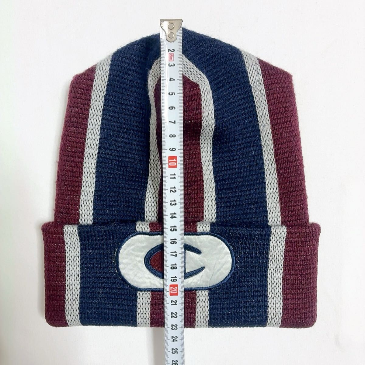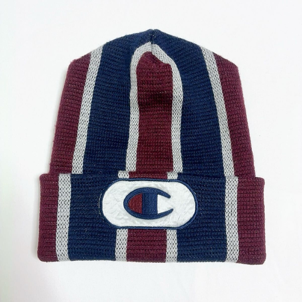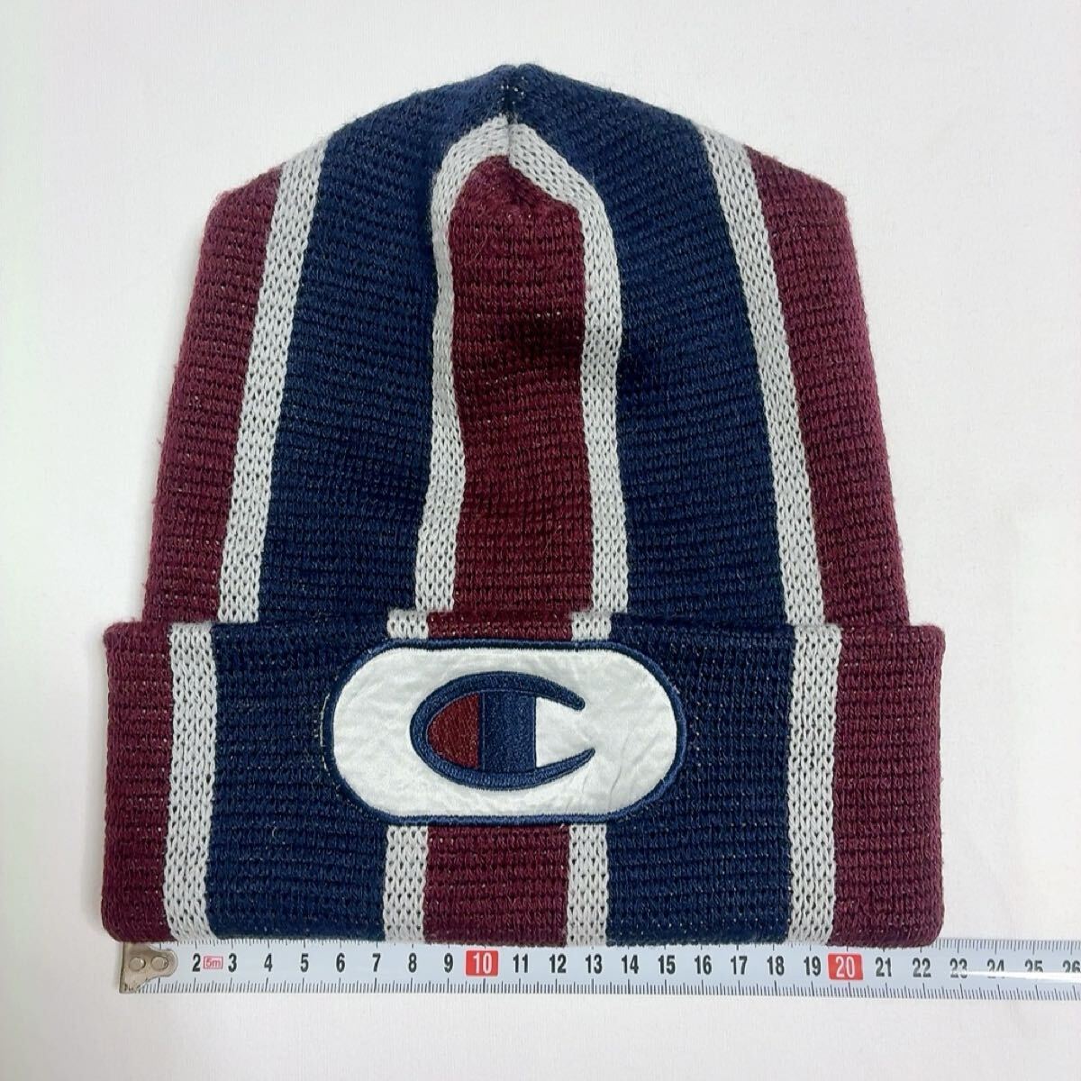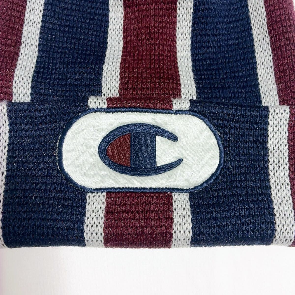 champion チャンピオン ストライプ ロゴ ビーニー ニット帽 90s 00s 日本製 古着 オールド