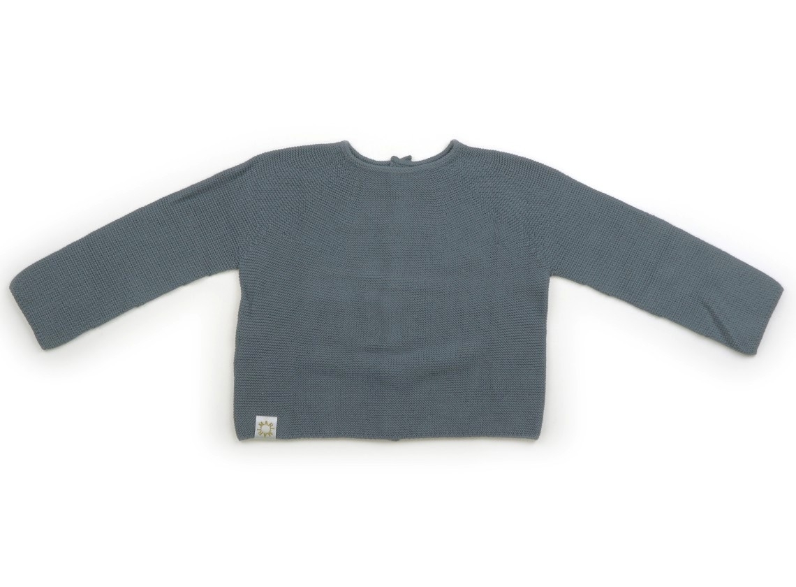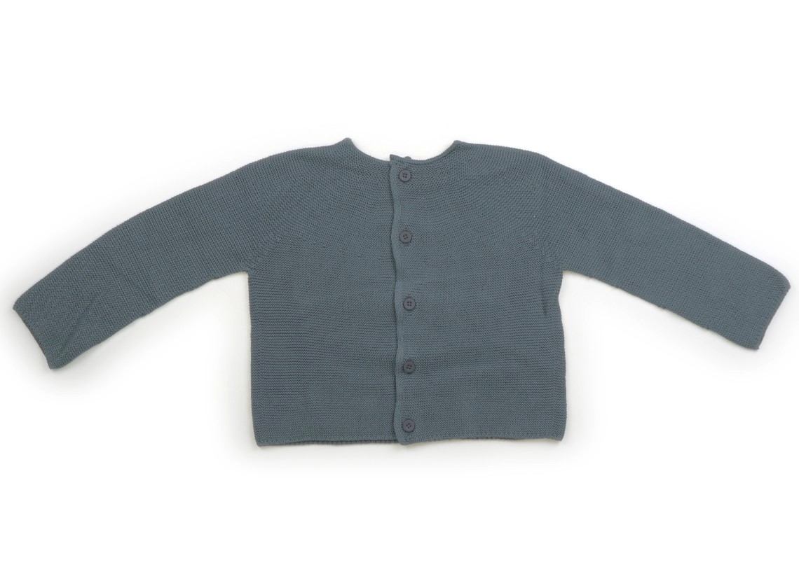 サイズ表記はありませんが、公式サイト記載は、推奨年齢0-4才です。便宜上80cmに分類しました。カーディガンとして、また、ボタン側を背にしてプルオーバーニットとしても使えます。薄い毛羽立ちありますがまだお使いいただけそうです。予備ボタン付きです。
