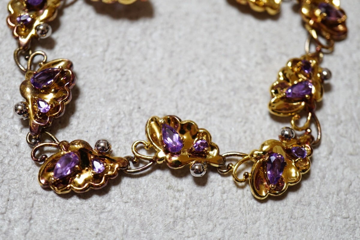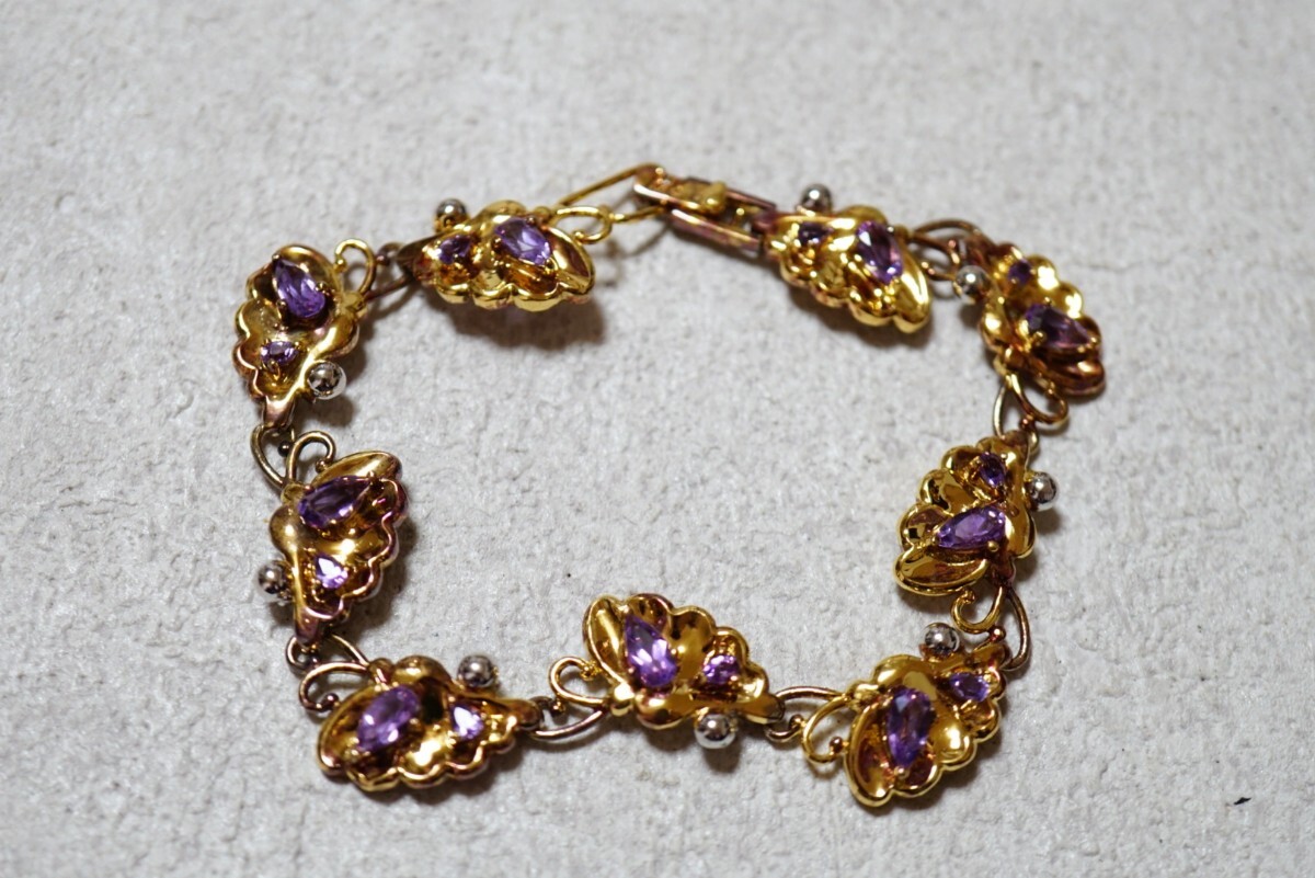 1145 天然アメジスト ブレスレット ヴィンテージ アクセサリー SILVER 925刻印 天然石 宝石 色石 カラーストーン 装飾品