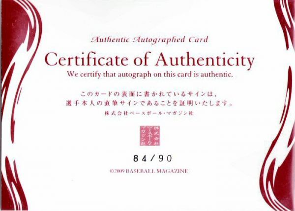●2009BBM/阪神 【福原 忍】90枚限定 直筆サインカード :刻印付