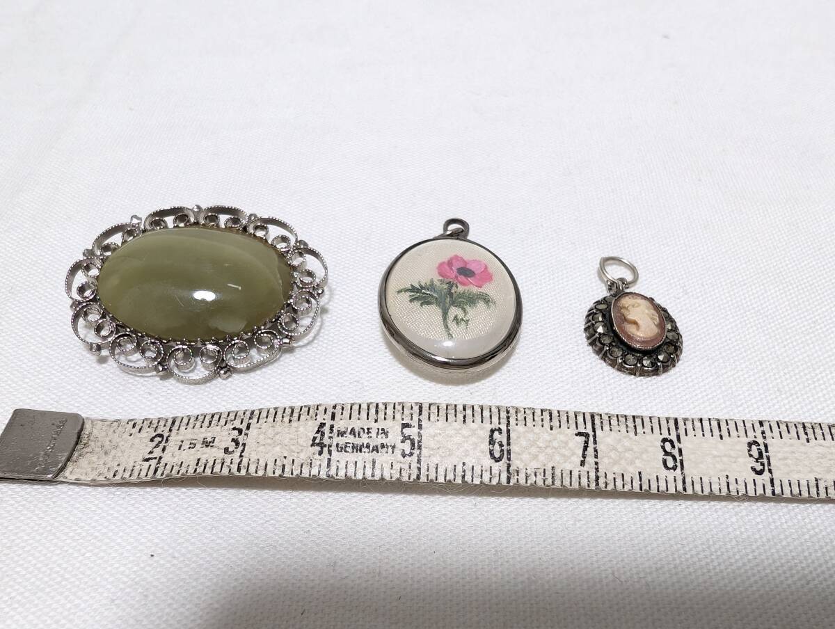ご覧くださいましてありがとうございます。ロンドンのアンティークマーケットで見つけたブローチとペンダント、3点まとめて出品させていただきます。コンディションの方は、写真を複数掲載しておりますのでご参照ください。3点とも本当に素敵なアクセサリーです。アンティーク品にご理解いただきましたうえ、ノークレーム、ノーリターンでよろしくお願い致します。