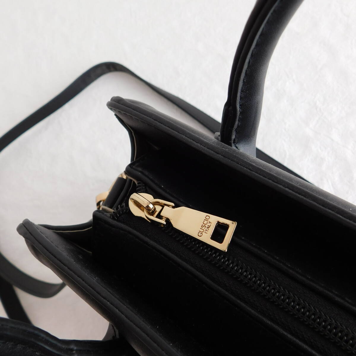 素材・成分:PUレザー 幅:(上部)24cm (下部)27cm 高さ(中央部):21cm マチ:8.5cm ハンドル:34cm 高さ:8cm ショルダー:109~123cm 重量:約550g |