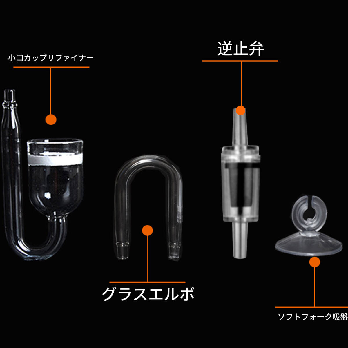 パッケージ内容 | ろ過器×1、グラス製エルボ×1、チェックバルブ×1、ソフトフォーク吸盤×1 |