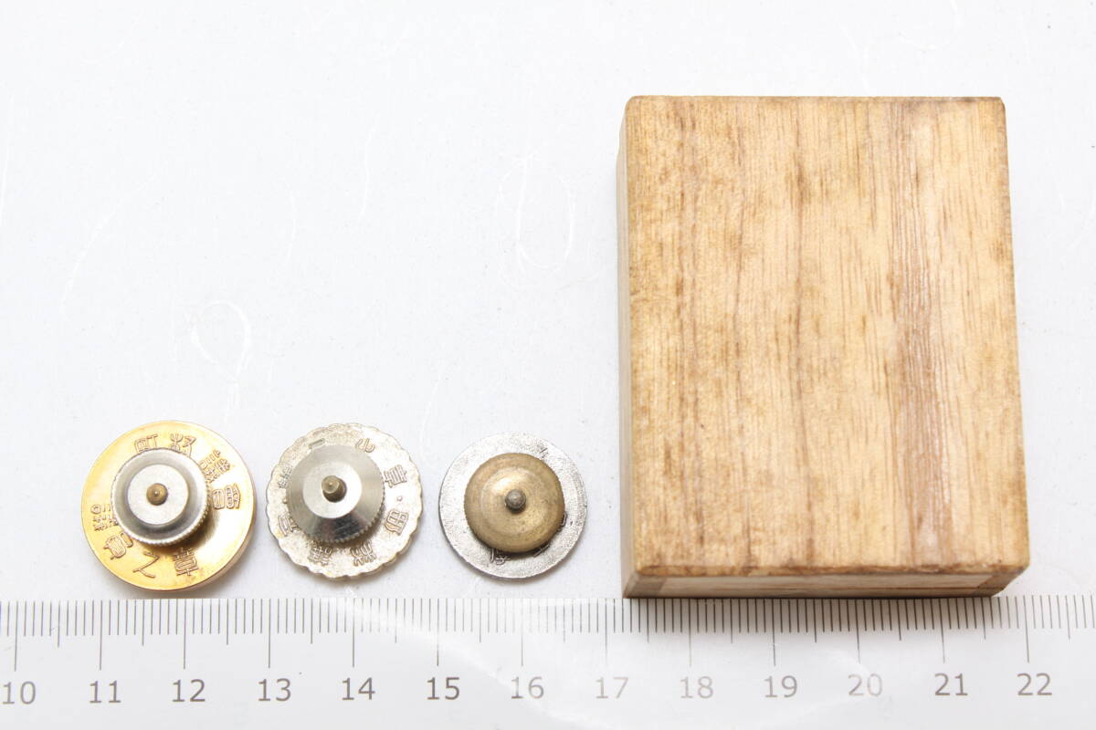 3732 バッヂ 合計3個 昭和22年 27年 厚生省 民生委員 町村議会 議員章 2個 バッジ 木箱付