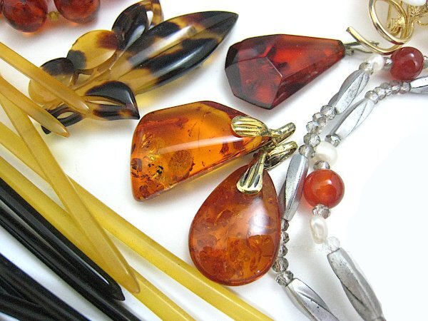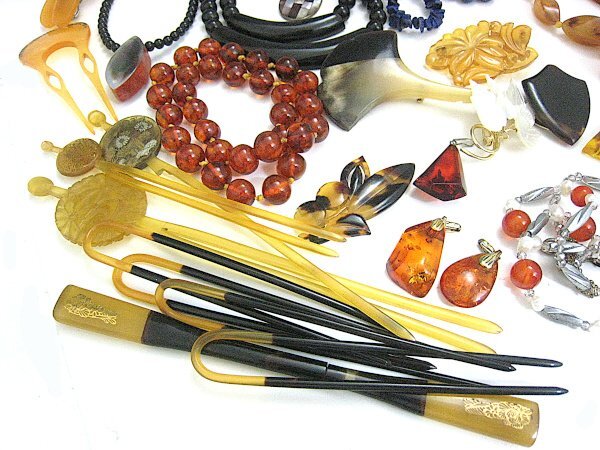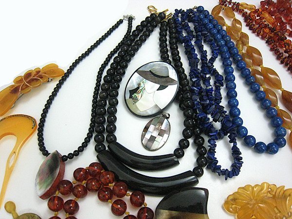 ★計39点 琥珀ネックレス・ラピス、天然素材ネックレス・鼈甲アクセサリー他いろいろでございます。