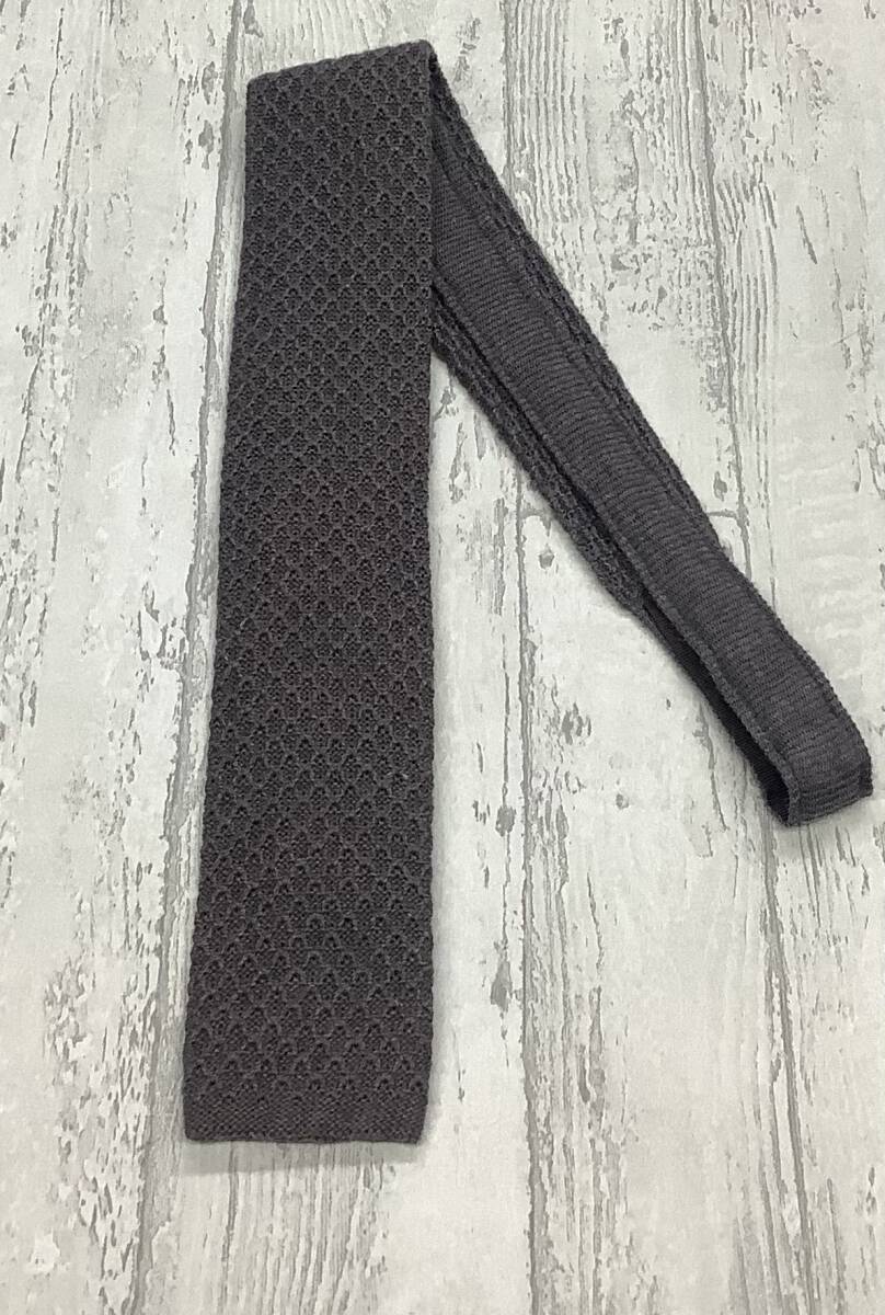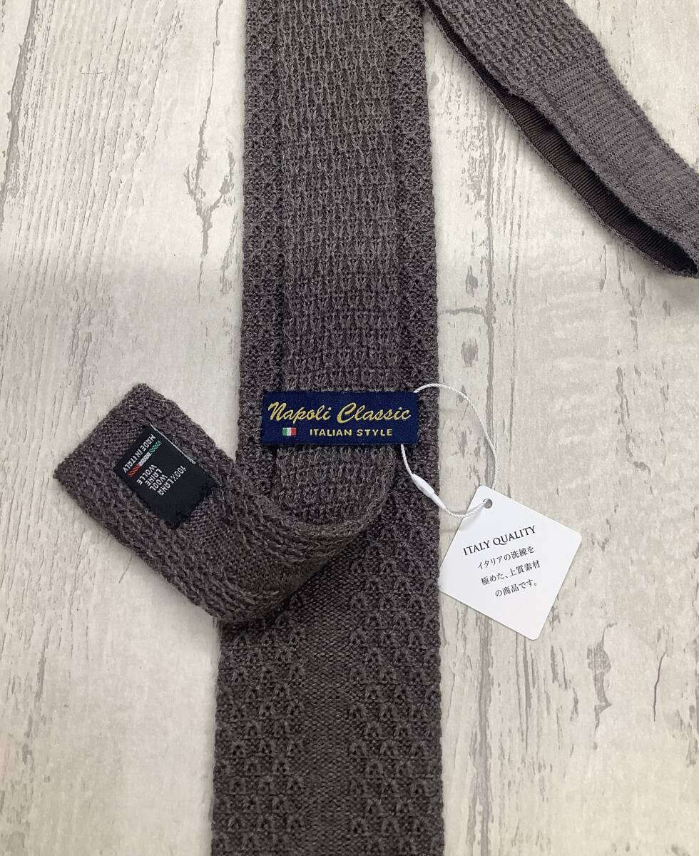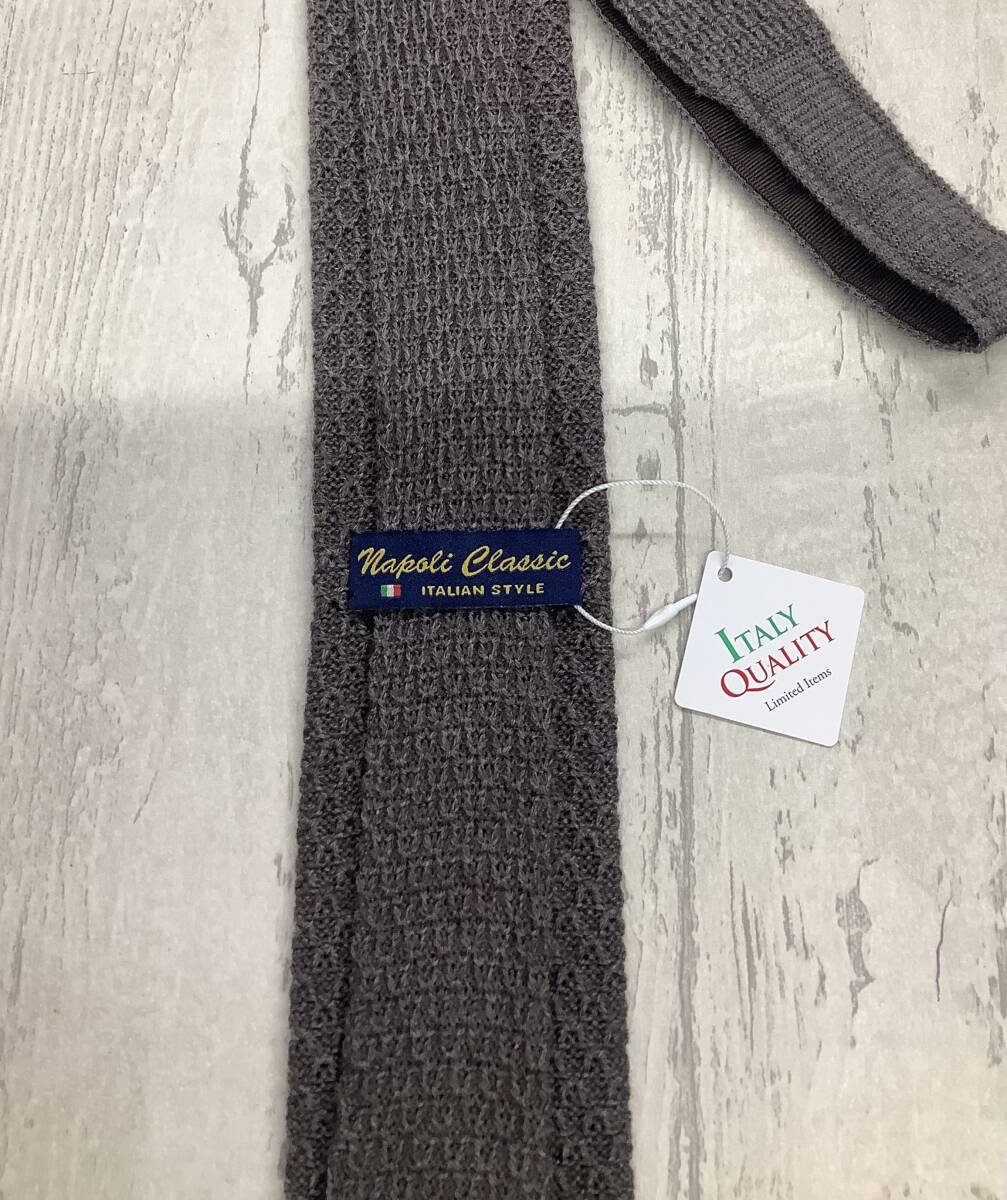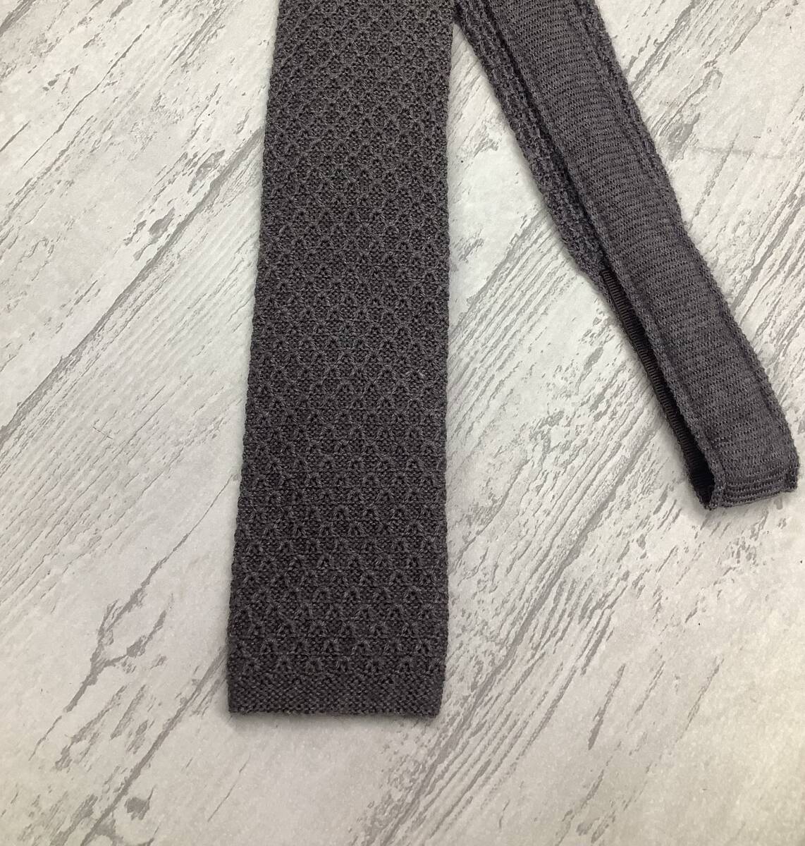 新品未使用  ニットタイ イタリア製 ライトグレー 灰色 ウール100% スクエアニットタイ 大剣6cm オシャレ★