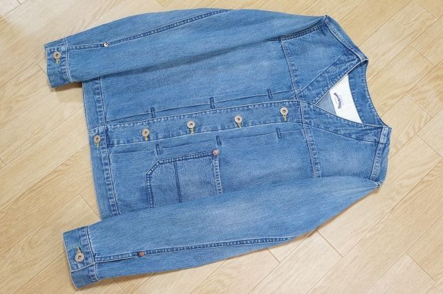 JWORLD WORKERS ワールドワーカーズ ユーズド加工 ノーカラー デニムジャケット