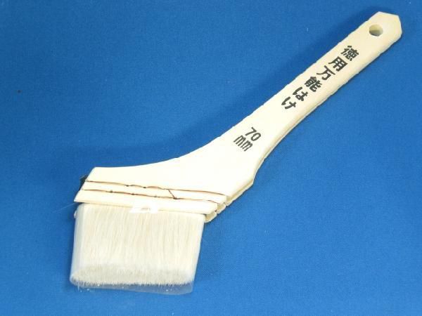 最もお得な万能刷毛です。油性塗料・ニス塗り・FRP樹脂・簡単な水性塗料などに使用できます。仕様1.毛材:山羊毛・化学繊維2.製法:とじ式3.形:筋違 4.毛幅:30/50/70ミリ身が詰まっていないハケは大断面の塗装や、FRPのように樹脂を毛に含ませるものは毛量が重要になります。万能徳用ハケは低価格でありながら、毛量も申し分なく、当店で特別に取扱いをしました。FRP用に使い捨てをされる方はこちらが便利です。FRP素材屋さんの刷毛シリーズ○ハケの種類○目地刷毛ハケ=細かい部分の塗装に適しています。一般刷毛ハケ=巾の広い場所の塗装に適しています。コテ刷毛ハケ=平面などの場所の塗装に適しています。ダスター刷毛ハケ=ホコリなどを払うのに適しています。○材質の種類○化繊化学繊維・キューティクルがない一本の繊維のため樹脂などが入りづらく、洗えば何度もつかえます。動物毛キューティクルFRPや塗料がつまって固まるので、ゴワゴワとしてくる。コシがあるので、高粘度塗料などの塗装に向いています。