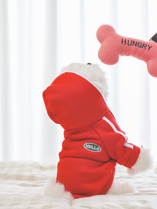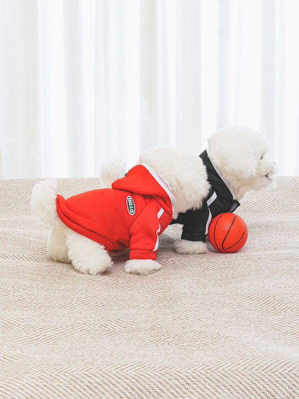 ペット服 パーカー 服 レッド 赤 かわいい フード付き 犬 散歩