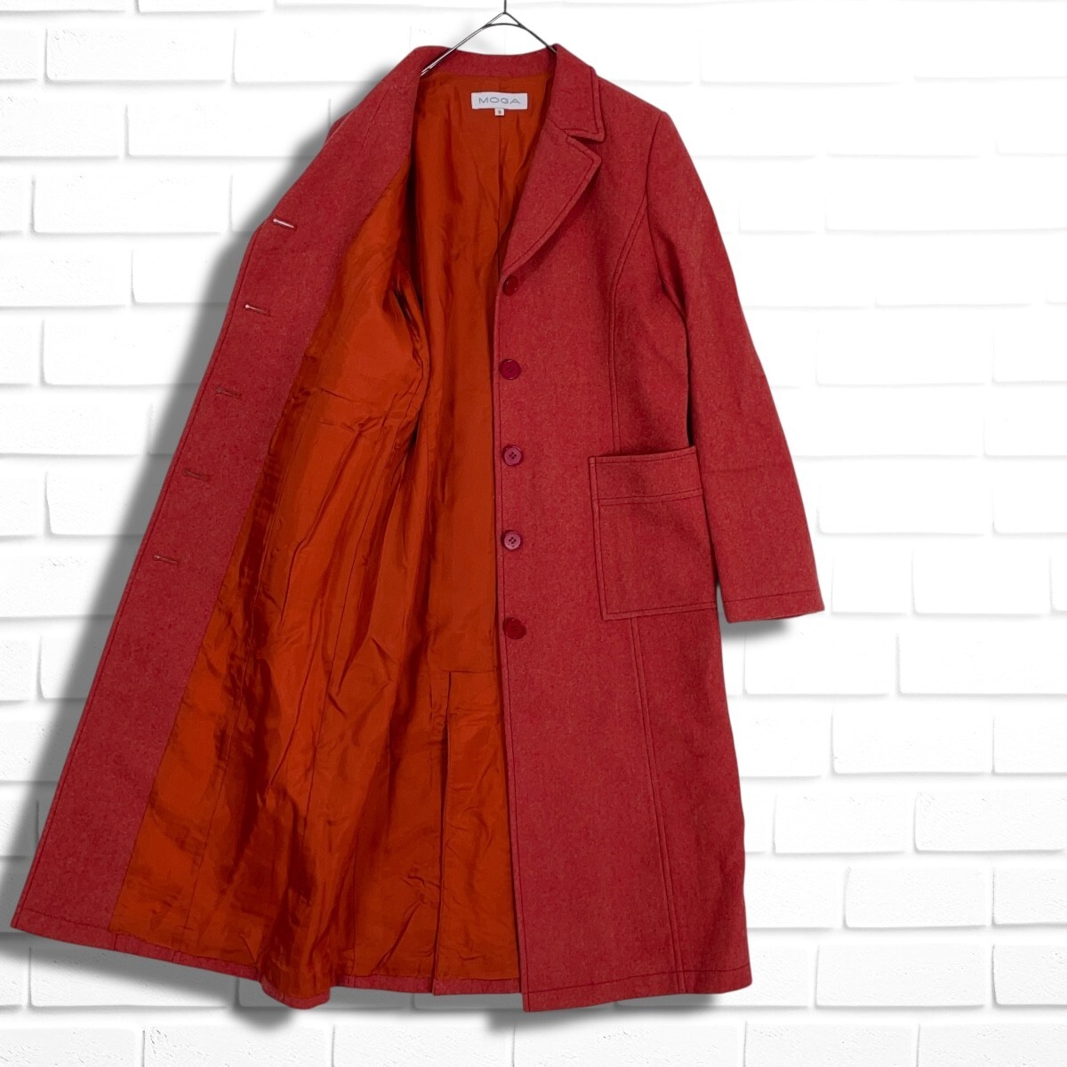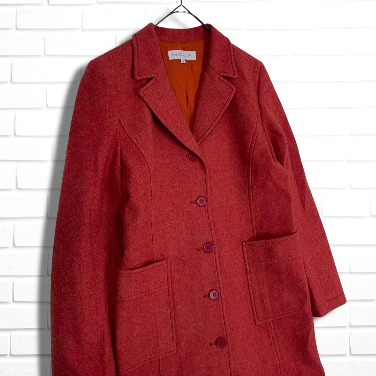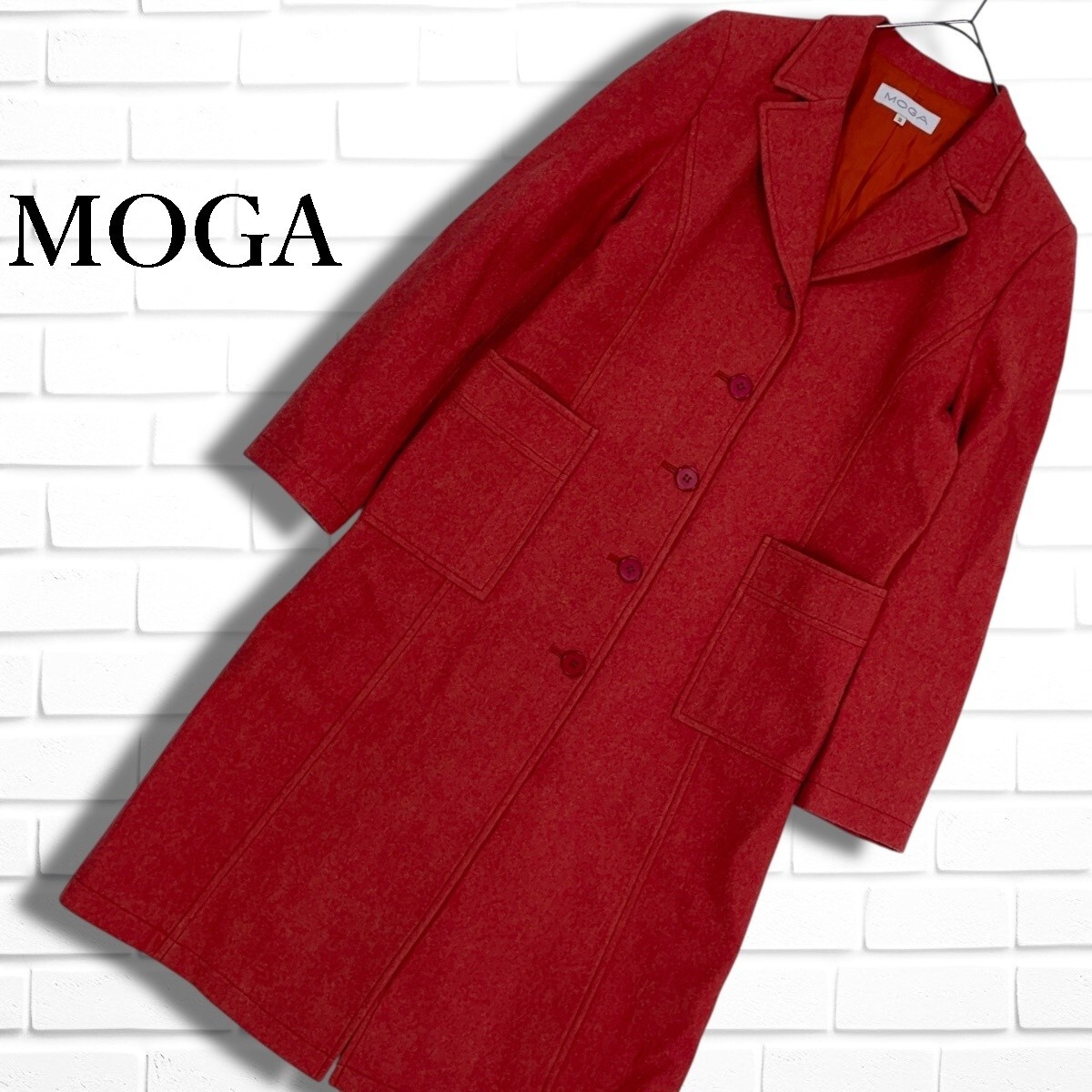 ◆美品◆ MOGA モガ ウール 100% ロング チェスター コート 赤 レッド レディース 2 ◆日本製 送料無料◆ 4785I◇