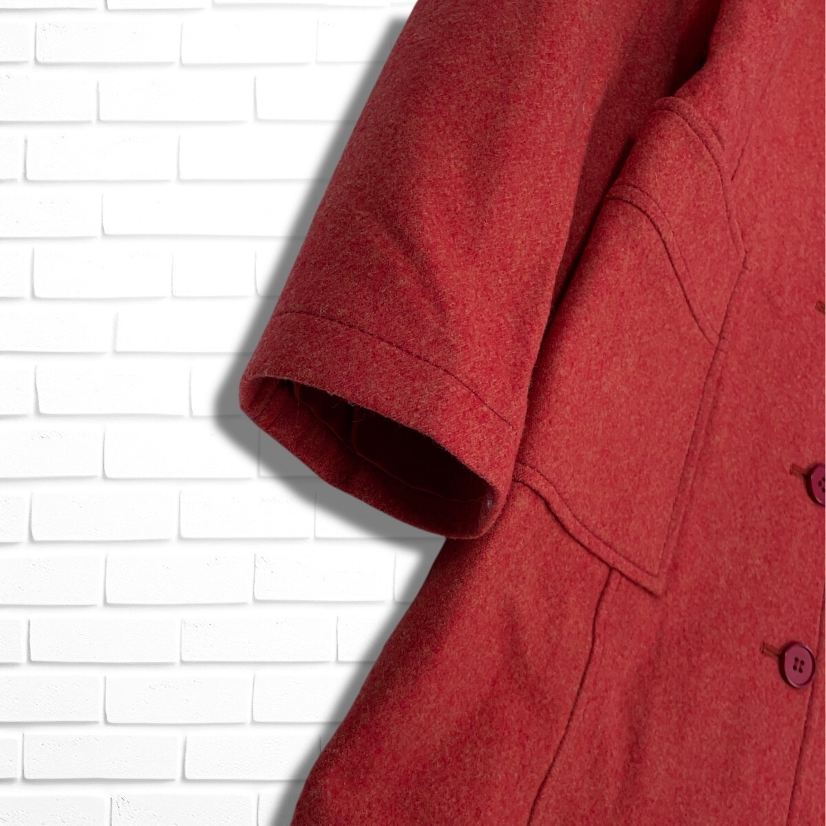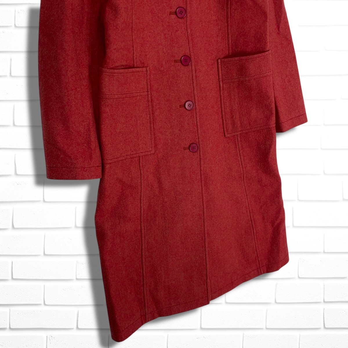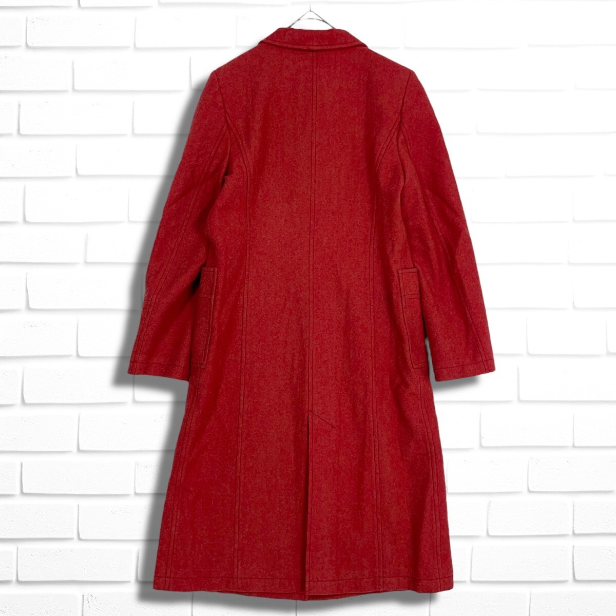 ◆美品◆ MOGA モガ ウール 100% ロング チェスター コート 赤 レッド レディース 2 ◆日本製 送料無料◆ 4785I◇