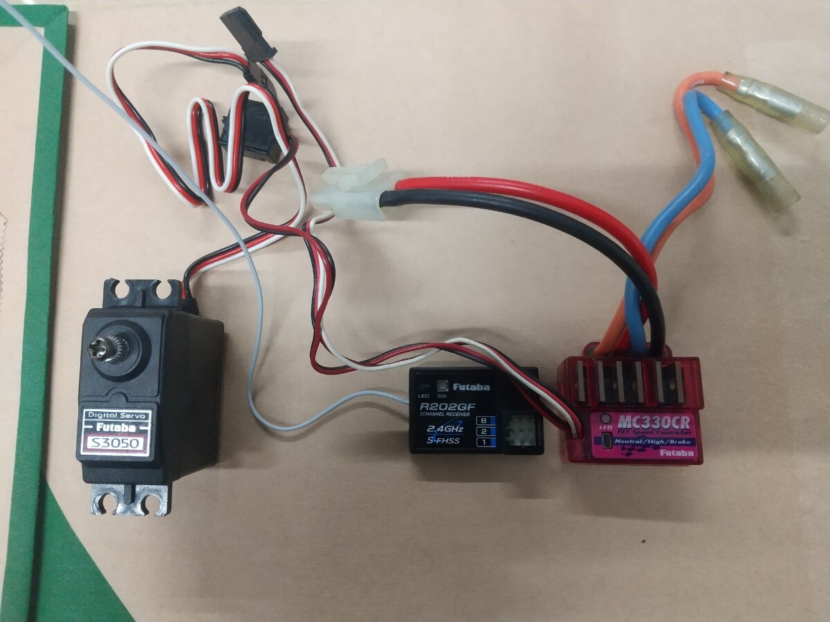 フタバの受信機とアンプとサーボのセットになります。受信機はR202GFで、アンプはMC330CRで、サーボはS3050になります。動作確認済みです。中古ですので、ノークレームノーリターンでお願いします。