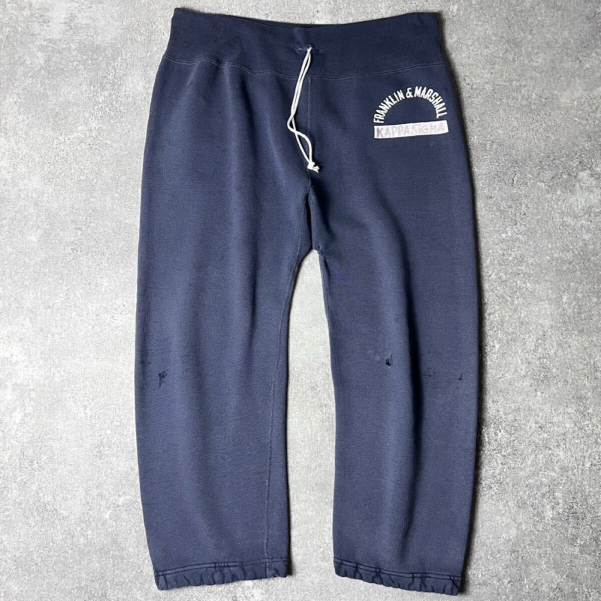 雰囲気系 60s Champion 2段 カレッジ プリント スウェット パンツ / 60年代 ビンテージ チャンピオン トレーナー 襤褸 ナス紺
