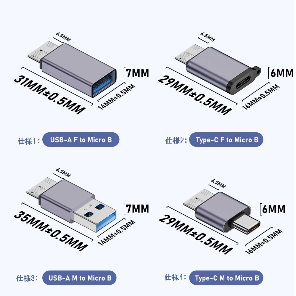 | 商品説明 | 【Micro B to USB 変換アダプタ】 プラグアンドプレイ、ミニサイズ設計、持ち運びしやすく、接続がしっかりしていて安全。両端がぴったりとフィットし、ポータブル外部ハードディスクドライブとノートパソコンの間に堅牢な接続を提供し、安定した高速なデータ転送を大幅に確保します。 【USB Type C to マイクロUSB】 接続されたデバイスのポートが USB3.2 Type Cの場合にのみ、Micro Bコネクタの片側の速度は使用に適用される10Gbpsに達する可能性があります。テストおよび検査はUSB規格に適合し、USB 3.0 / USB 2.0デバイスに適合し、内蔵の56KΩプルアップ抵抗がデバイスを損傷から保護します。 【伝送速度】 USB 3.0インタフェースのデータ伝送速度は10Gbpsに達し、この製品は、数秒でハイビジョン映画を転送でき、貴重な時間を節約できます。 【互換性】 USB 3.2 ポート付きデバイスとMicro Bポート付きデバイス、例えばHDD/SSDモバイルハードディスク、デジタルカメラ、ハードディスクボックス、Samsung Galaxy Note 3/S 5などのデバイスに適しています。 |
