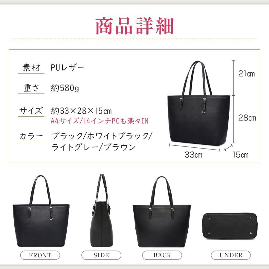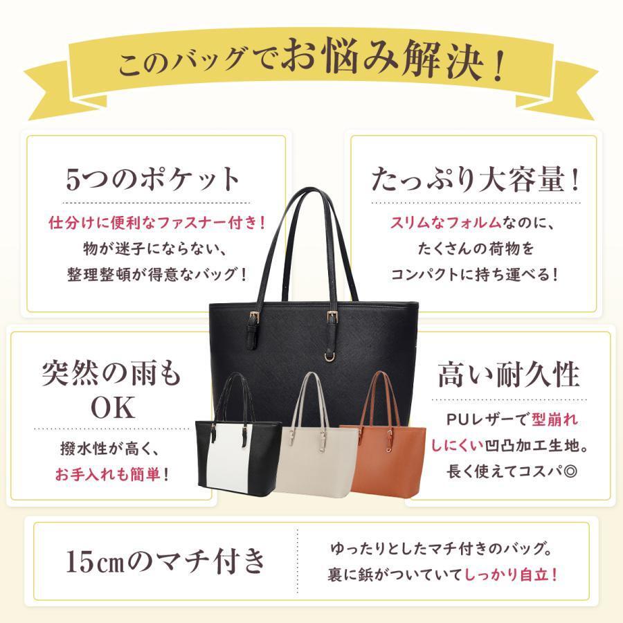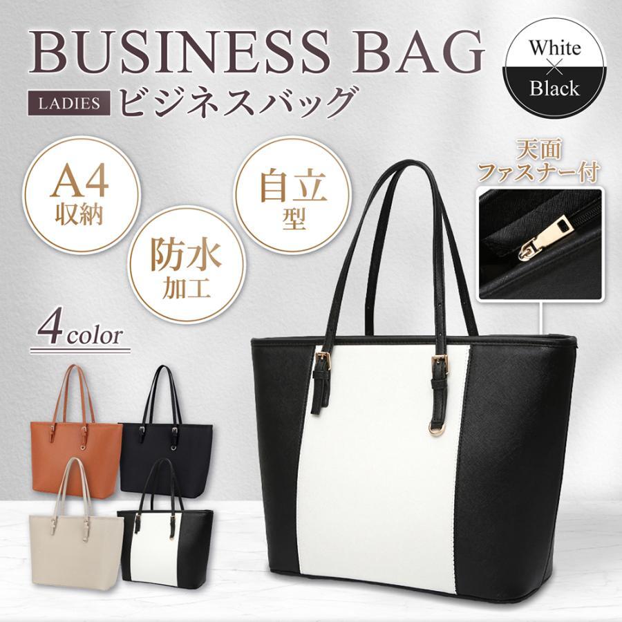 ビジネスバッグ レディース リクルート バック a4 軽量 自立 就活 大容量 カバン 革 トートバッグ 通勤 出張 JHB0064 ホワイト&ブラック