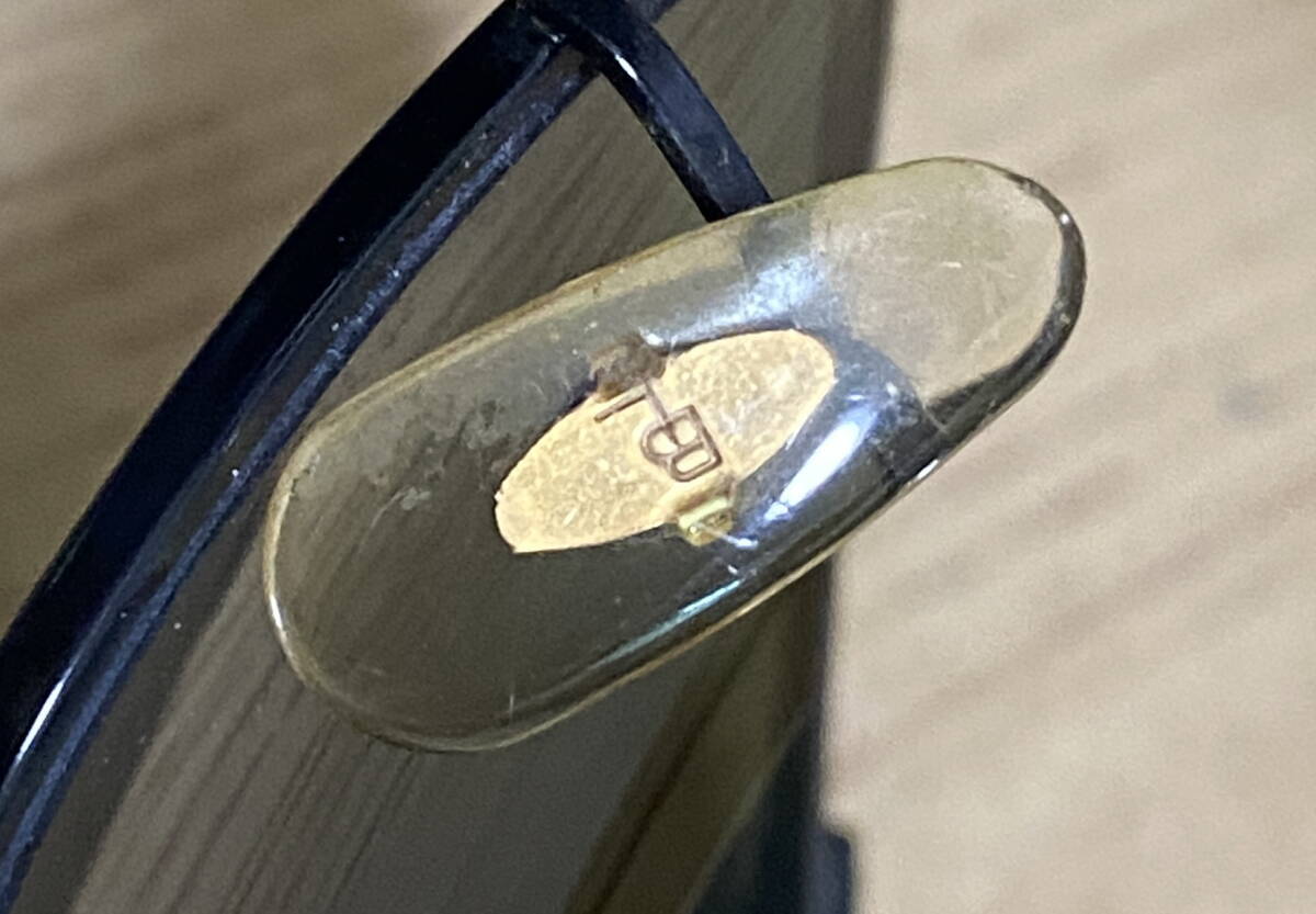 向かって左レンズ左上にRay-Banプリントロゴ、左右レンズ左右端にBL刻印があります。