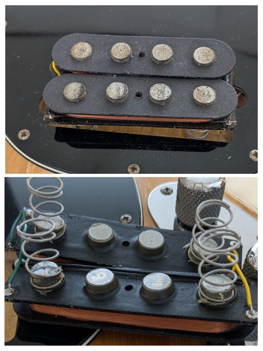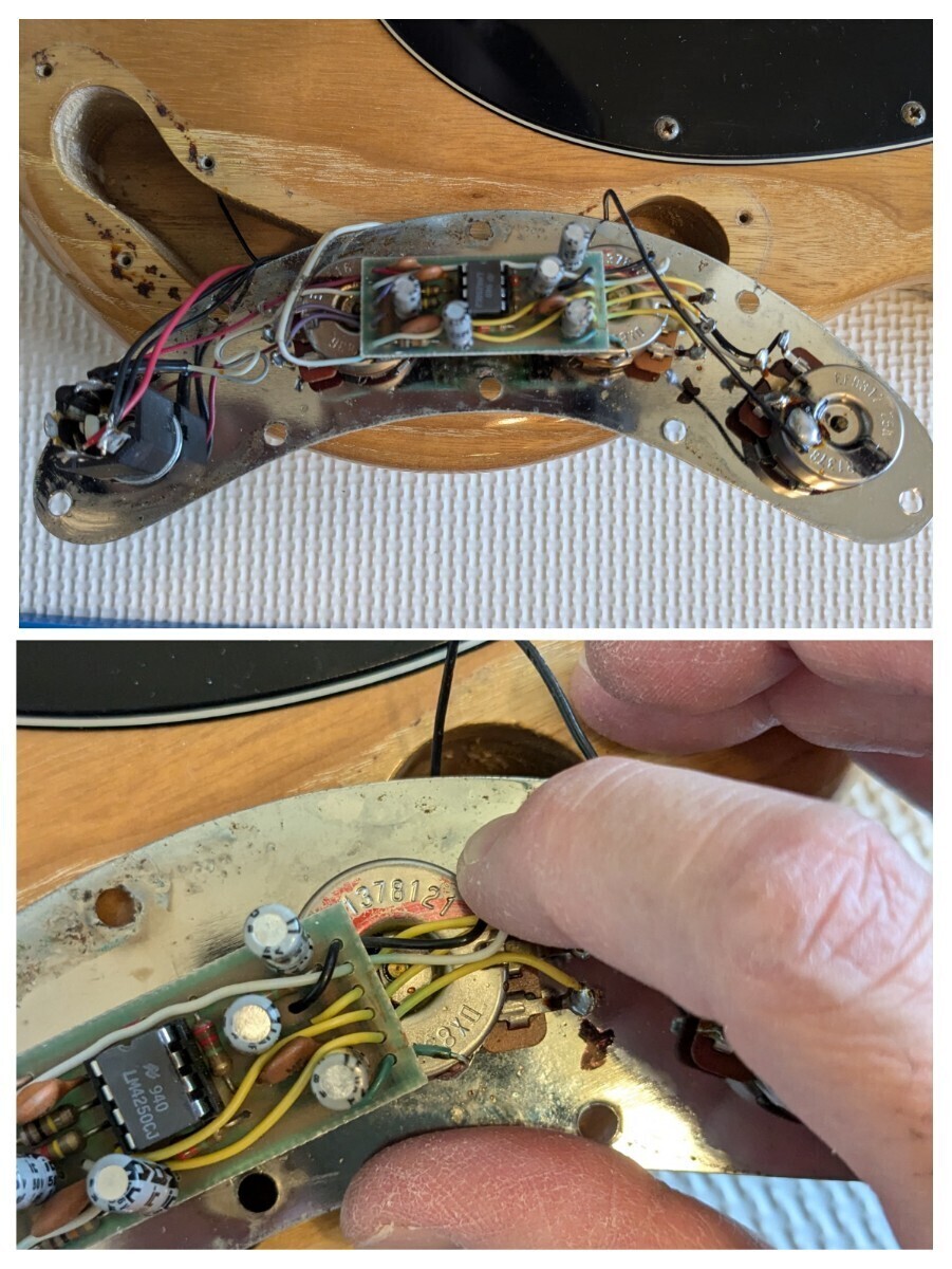 ピックアップ、プリアンプ等について詳しい知識がないため画像でご判断ください。ガリなどなく正常に作動します。ポットのひとつには1378121と記載がありました。
