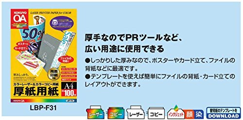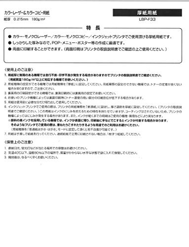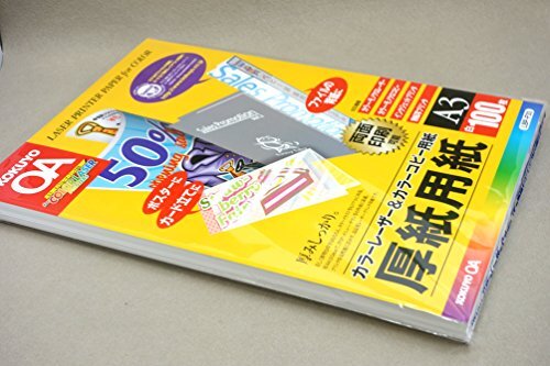 ・ A3 ・・Size:A3・サイズ:A3・総枚数: 100枚・坪量:180g/m2・紙厚: 0.22mm・両面印刷用紙より PRツールに幅広く使える、カラーレーザー用厚紙 カラーレーザー用紙では初めての厚紙(厚さ215μm)タイプ。 商品紹介 ●しっかりした厚みのカラーレーザー・カラーコピー用紙です。 ●ポスターやカード立て、ファイルの背紙などに最適です。 ●テンプレートを使えば簡単にファイルの背紙・カード立てのレイアウトができます。 ●用紙厚さ180g/m2以上に対応する機種でお使いください。 ●キヤノンやHPなどの顔料の黒インクを採用しているインクジェットプリンタでご使用の場合、重ねたりこすれたりした時に、インクが手や他の用紙に付着する場合があります。(ご使用の場合にはフォトモードを選択して印刷してください。) ●機種によってはにじみが発生する場合があります。