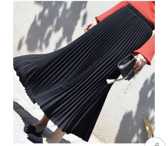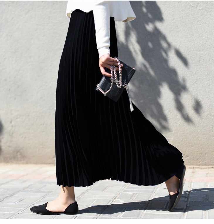 シフォンロングプリ-ツスカ-トです。動くたびに揺れるエレガントなプリ-ツスカ-トです。ファスナ-なし(ウエストゴム仕様)。裏地あり。