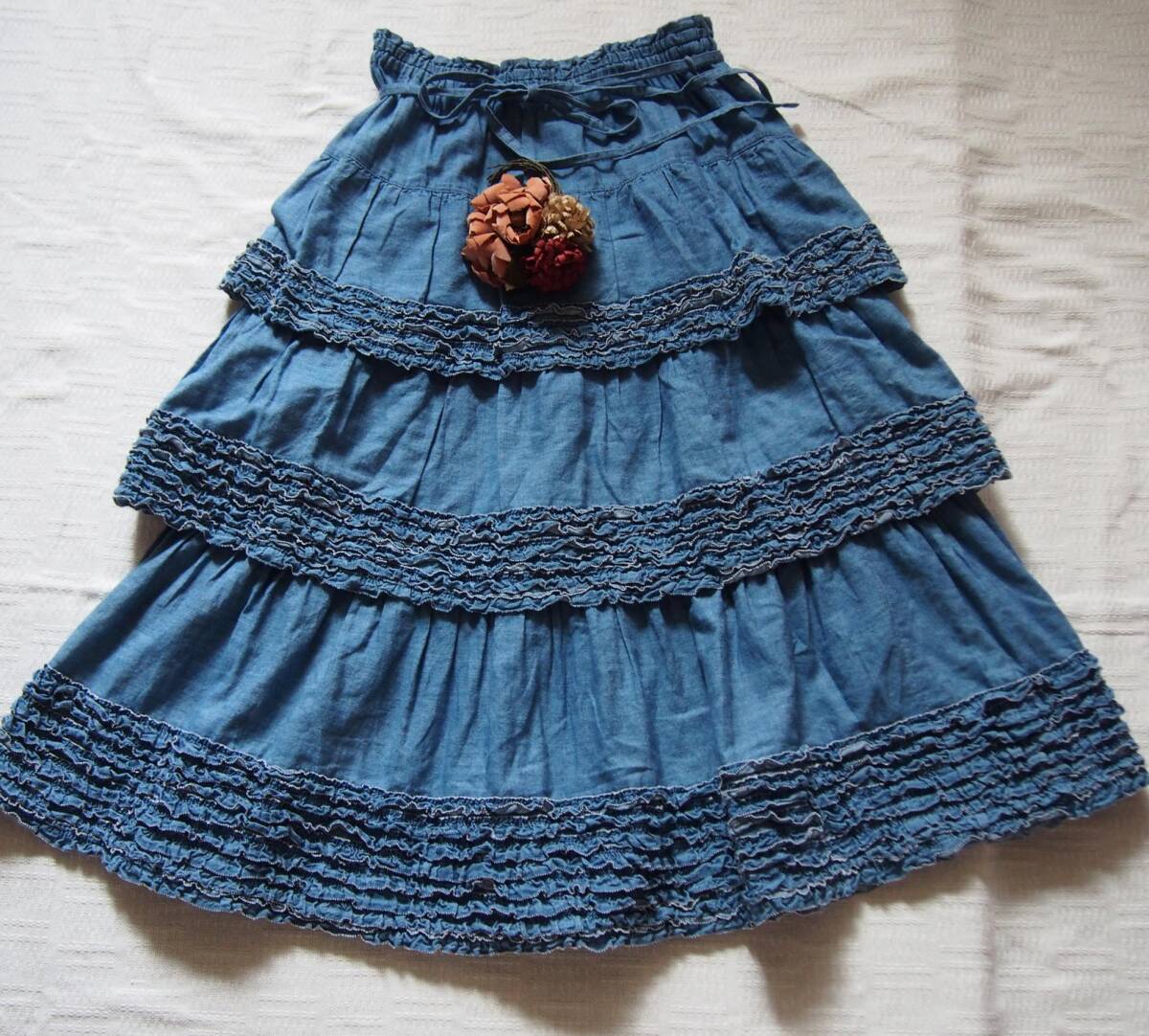 ピンクハウス/ダンガリー調半袖ブラウス&ミディ丈段々スカート