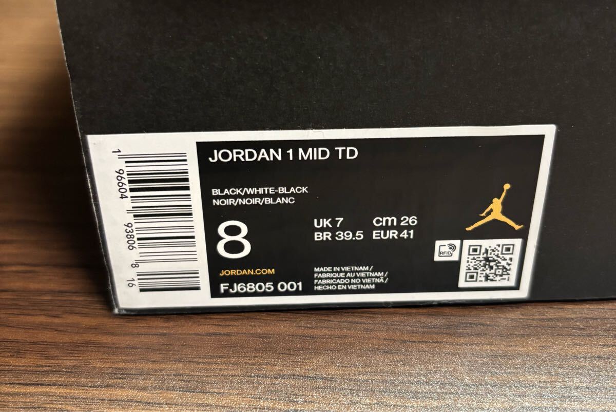 ジョーダン 1 ミッド TD クリート ブラック ホワイト 野球スパイクの未使用品です。