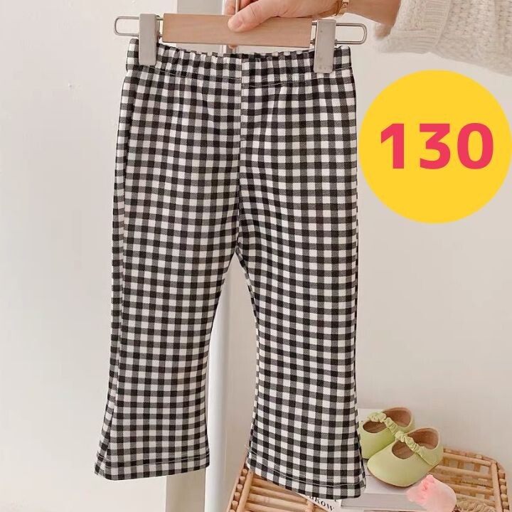 チェック柄で可愛い薄手フレアパンツ。