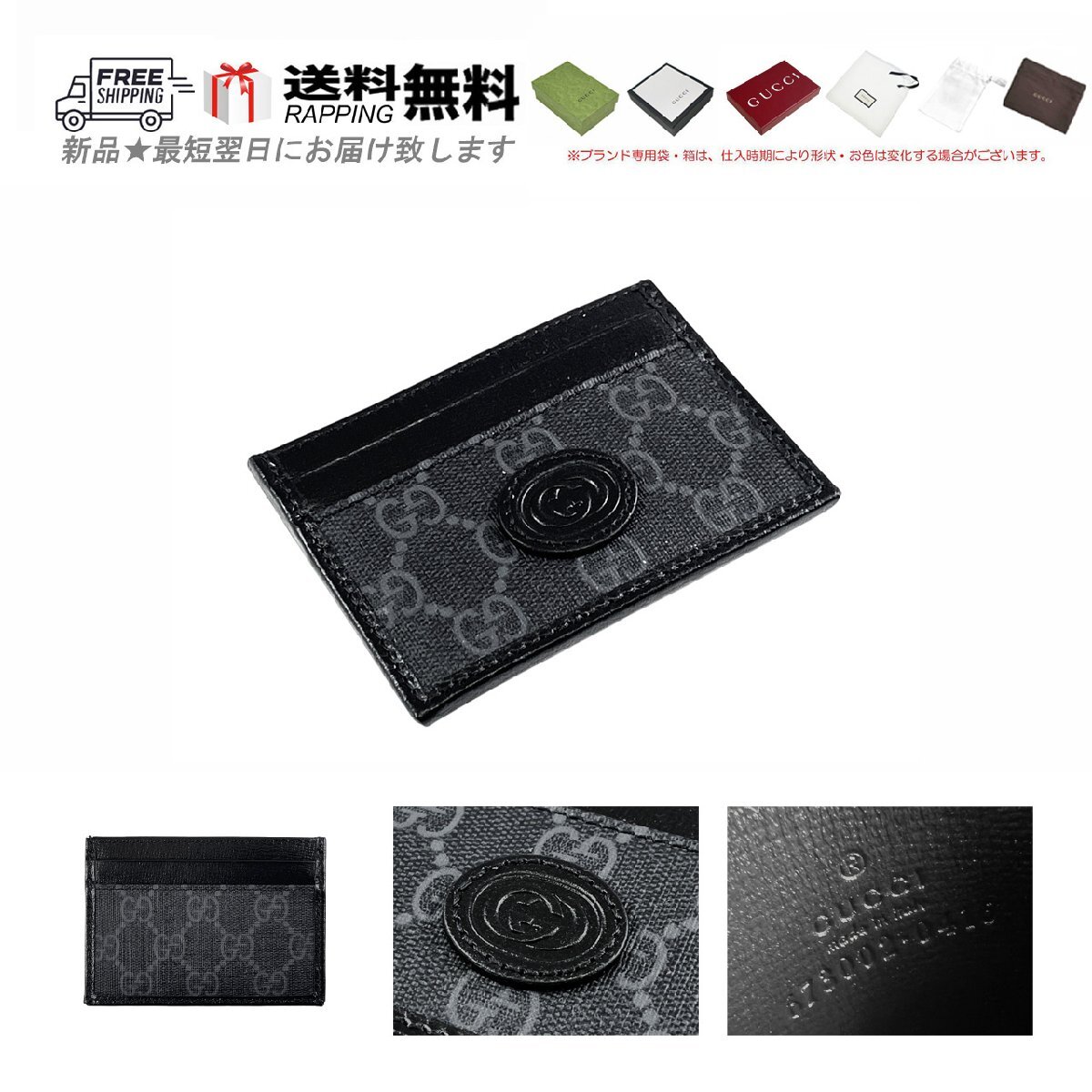 L815.. GUCCI グッチ 財布 ウォレット カードケース インターロッキング G キャンバス ロゴ イタリア製 ★ ブラック