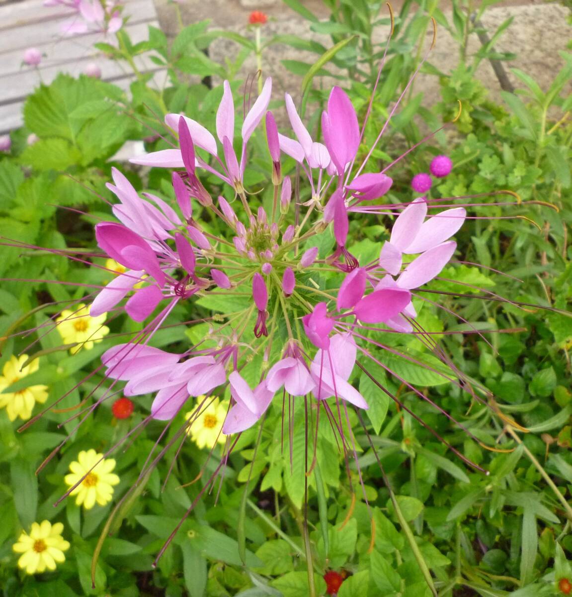 画像に他の植物も写っていますが、濃ピンク×薄ピンクのクレオメのみの出品です。