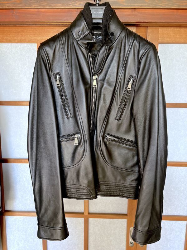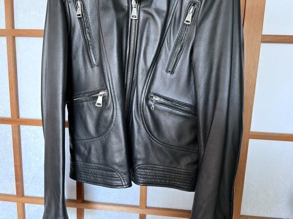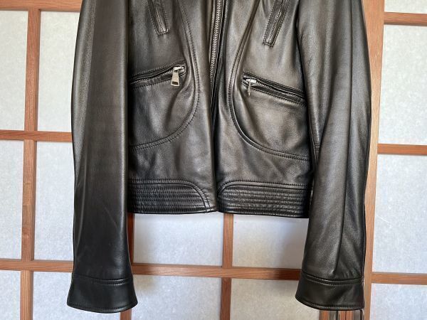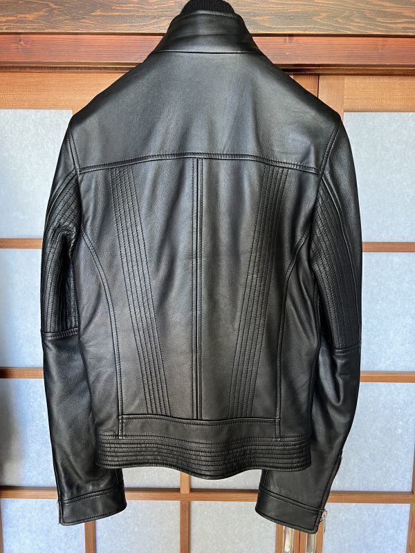 表記サイズ:46 肩幅40身幅46袖丈69着丈63 素材:ラムスキン93%ウール7% 色:ブラック 目立った汚れやダメージはなく状態は良好です