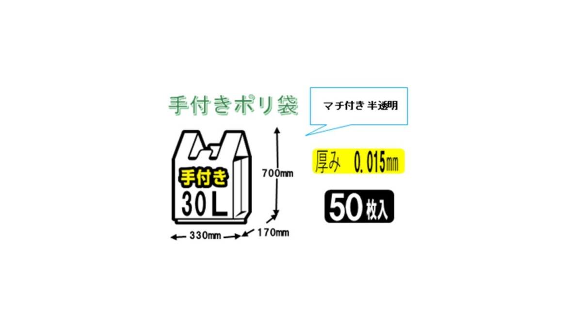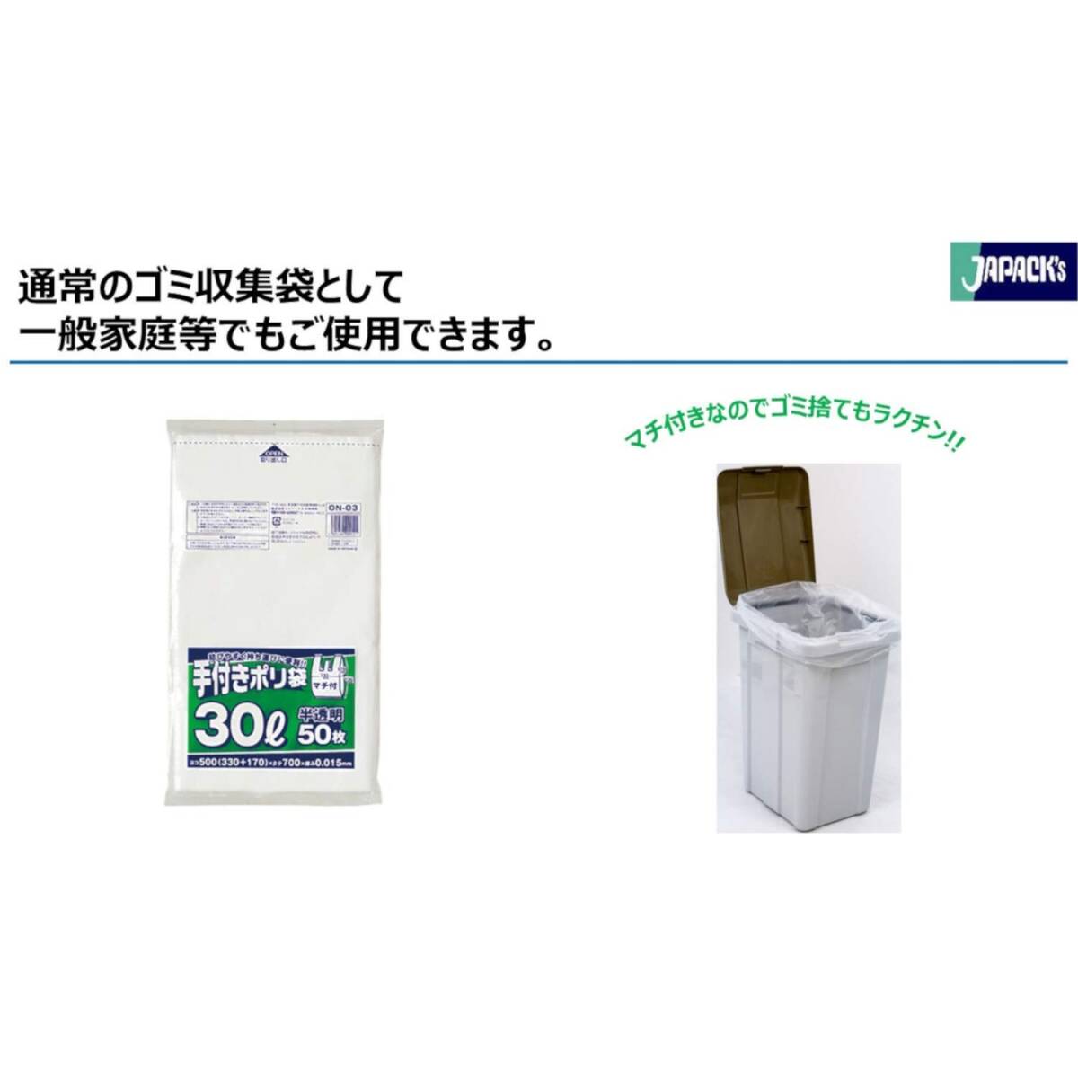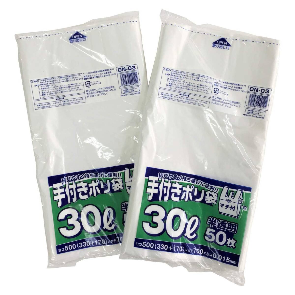 ジャパックス ゴミ袋 半透明 横33+マチ17×縦70cm 厚み0.015mm 手付き マチ付 ポリ袋 30L 2個セット ON-03 50枚入