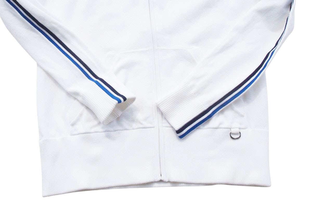 胸元やポケットまわりにはブランドらしい細やかなディテールが施されており、上品なスポーティさを演出します。