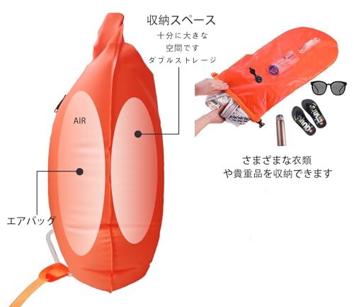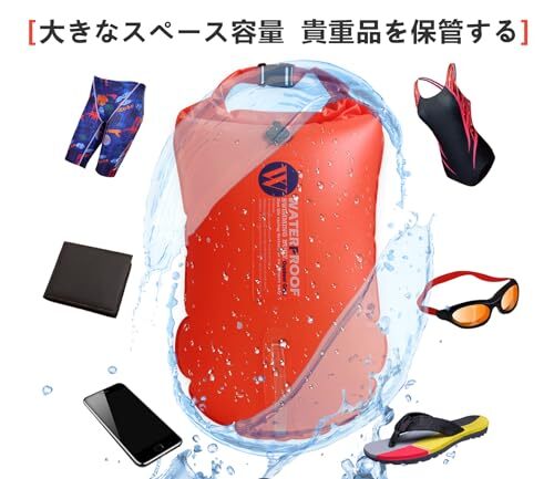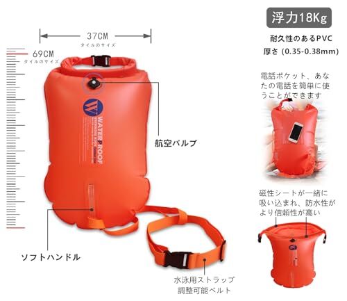 【使い方は簡単】ベルトに紐で留めるだけで、水泳中に邪魔になりません、トライアスロン練習、オープンウォータースイミングなどに最適です、調節可能なショルダーベルト付きなので、ショルダー、手提げの2通りの使用方法ができます。使用前にエア漏れを確認してください,何か質問があれば私たちに連絡してください,私たちはあなたのために新しい交換または返金します。製品に空気漏れがあったら新しい製品と交換してください。
