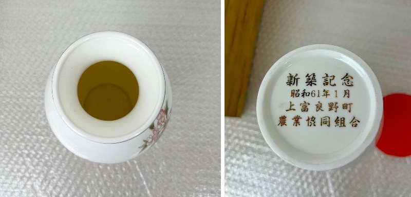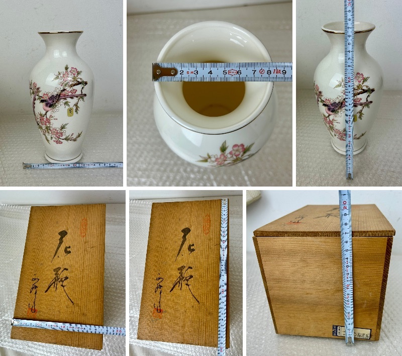 ニューボーン桜花鳥 花瓶 正峰窯 未使用 です。 陶磁器の製法上、絵柄・線画の途切れ、 ピンホール(針穴のような凹み) 色とび、黒点、線傷、ざらつき等が ある場合がありますがご了承ください。 共箱には経年保管時の汚れ、キズ等あります。 【サイズ】約 直径:8cm 高さ:26.5cm 傷、汚れは目立つ箇所を中心に撮影しております。 写真で確認できない部分がある場合もございますので、予めご了承下さいませ。 ※商品の特徴が分かりやすいように写真撮影を行っていますが、 ご覧いただいている画像と実物では色調等で違う印象を受けることもあるかと思います。 どうぞご容赦くださいませ。 |