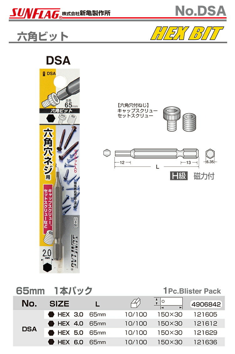 新亀製作所 六角ビット (1本入) 5.0 No.DSA