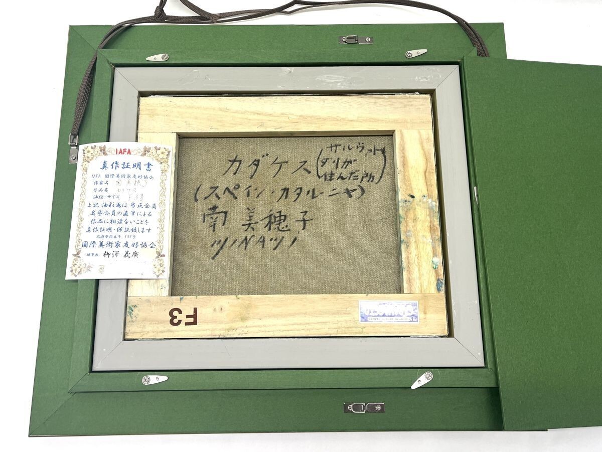 【K165】真作保証 南 美穂子 「カダケス」スペイン カタルーニャ F3号 額 真作証明書付き 風景画 油絵/油彩画 43×37cm 絵画 美術品 b | ||