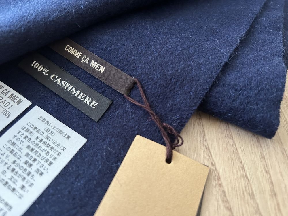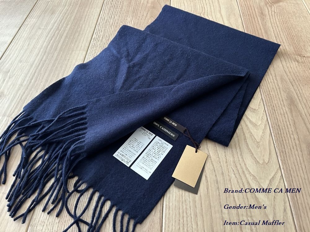 新品 COMME CA MEN コムサメン ソリッドカシミヤマフラー 09ネイビー Fサイズ 56RA01 定価14,300円