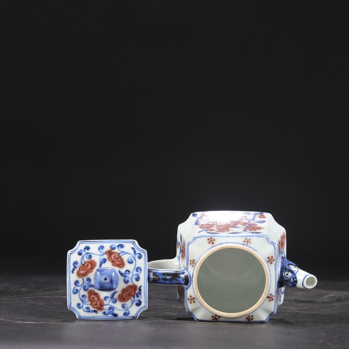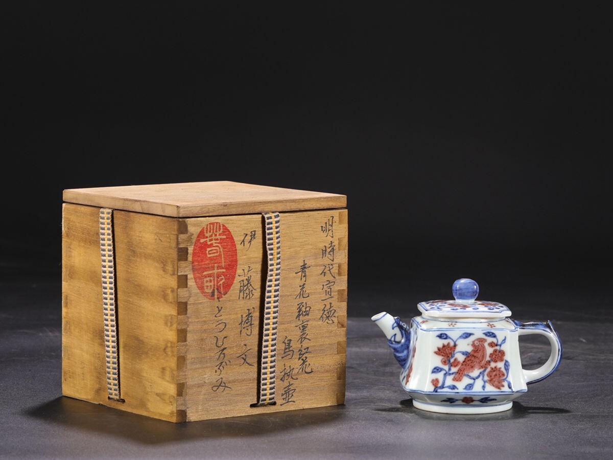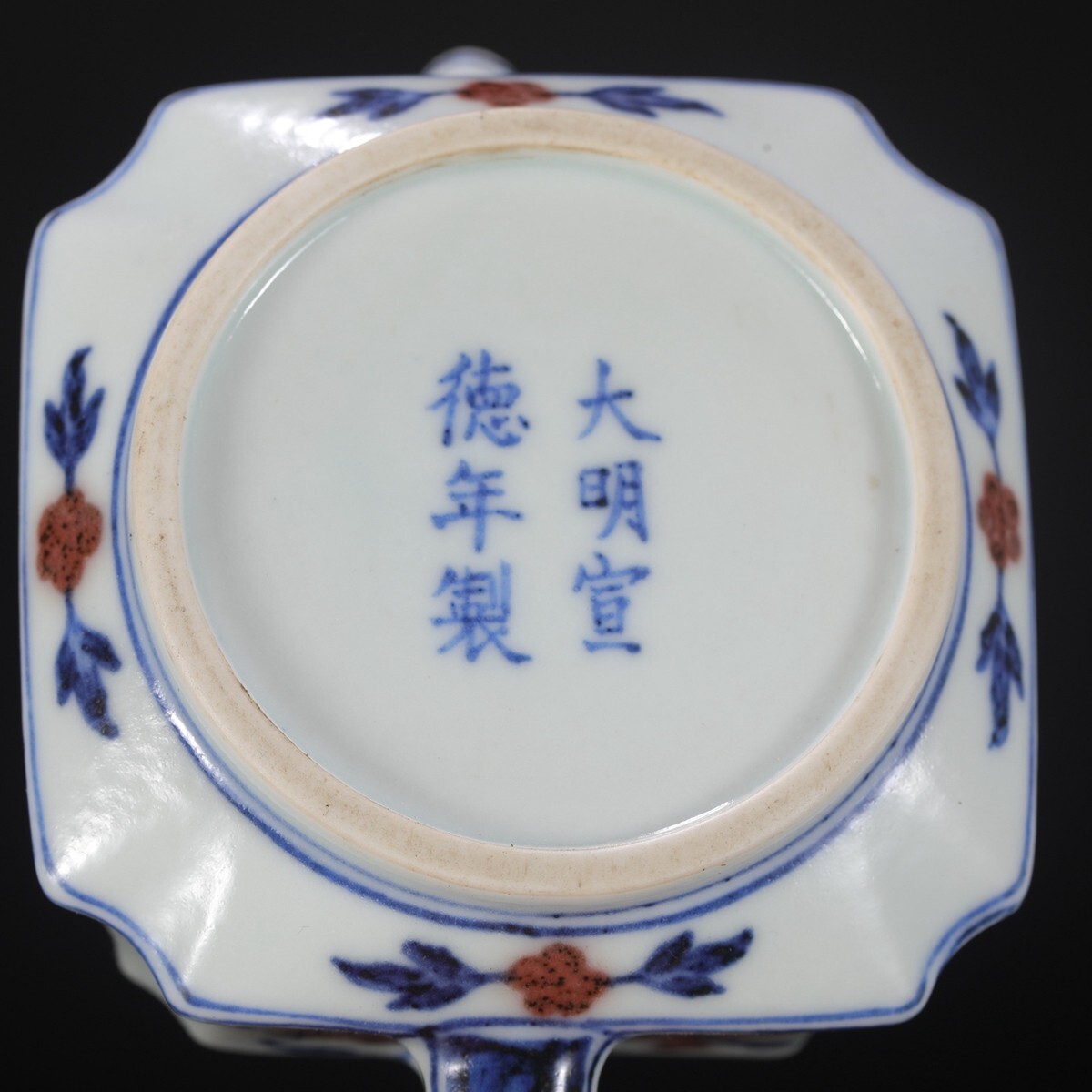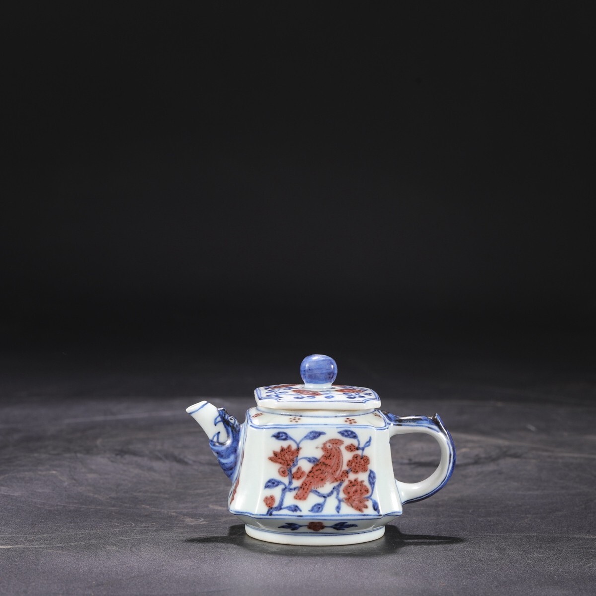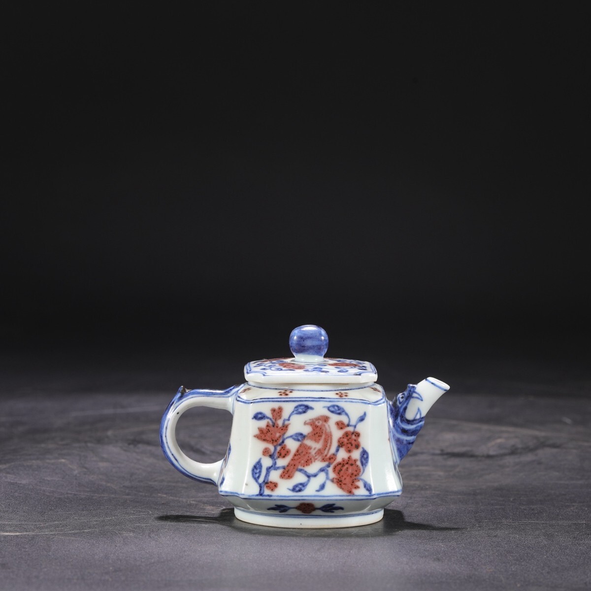 【瓏】陶磁器 青花釉裏紅 花鳥執壺 大明宣徳年製 染付 置物擺件 古賞物 古美術 陶芸 蔵出