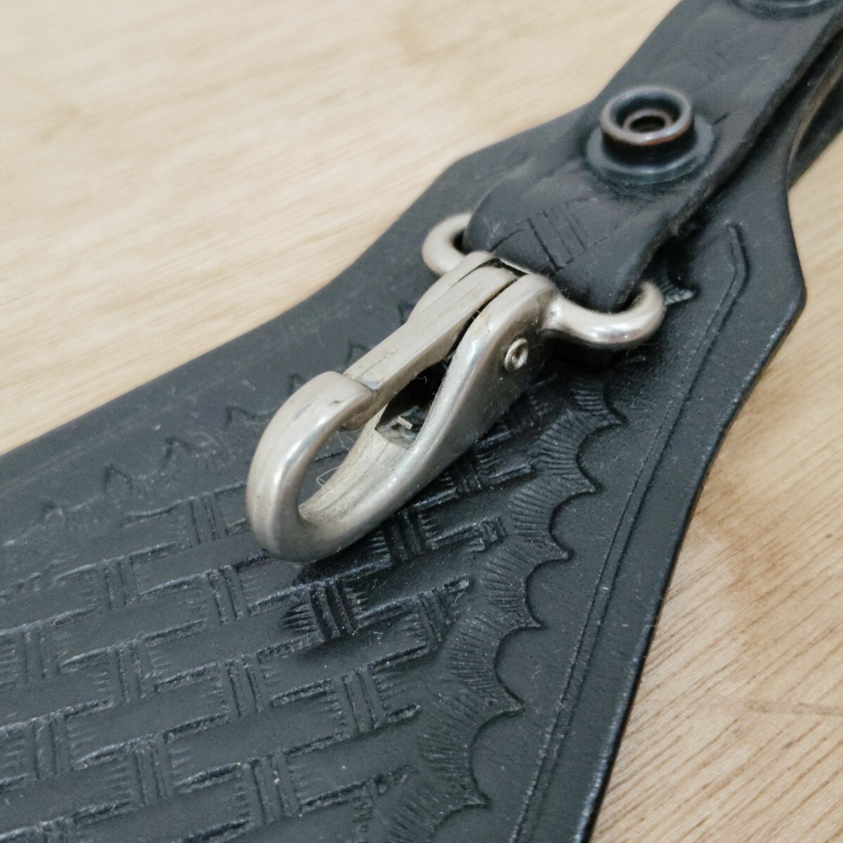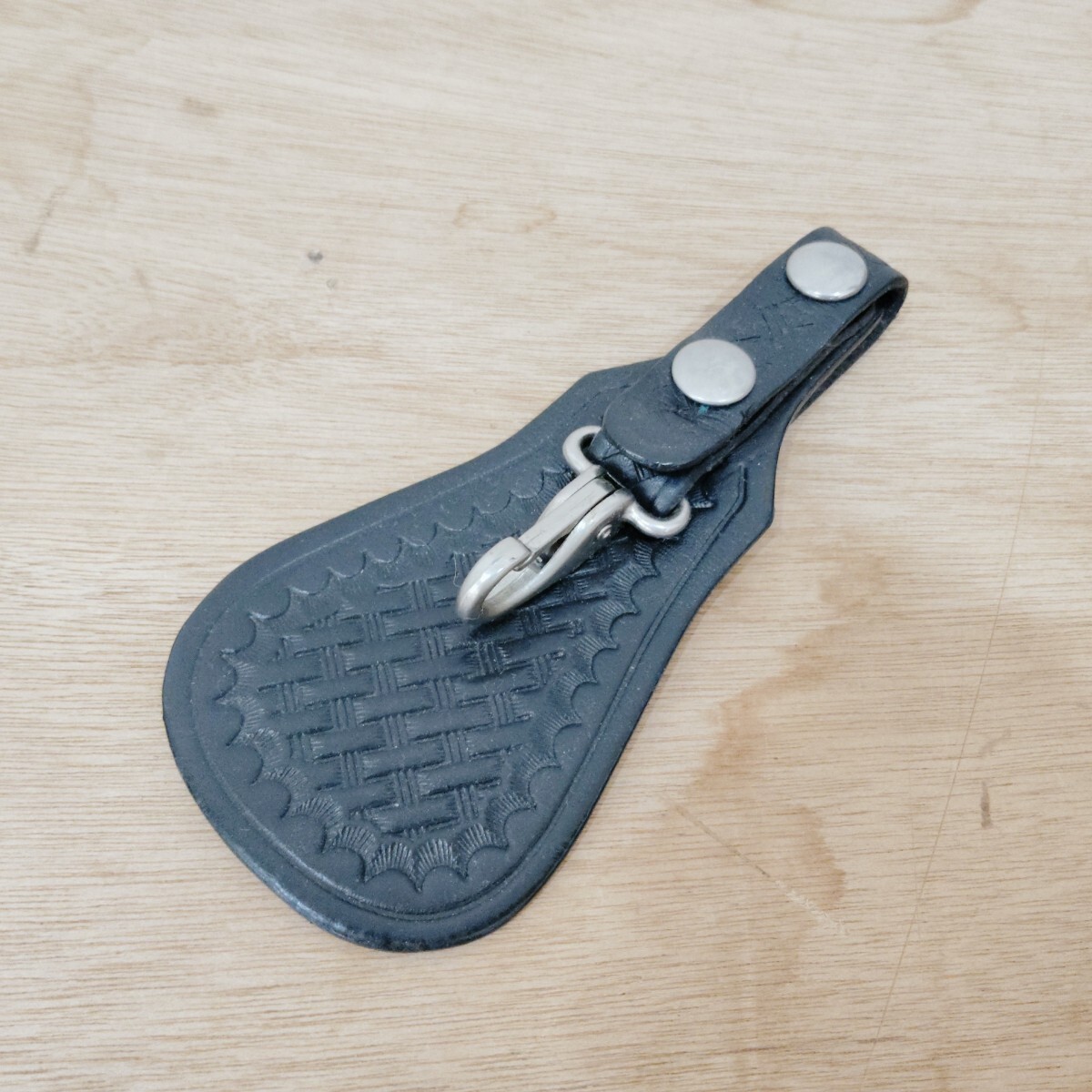 919/AKER キーストラップ レザー 型押し ダブルスナップボタン 黒