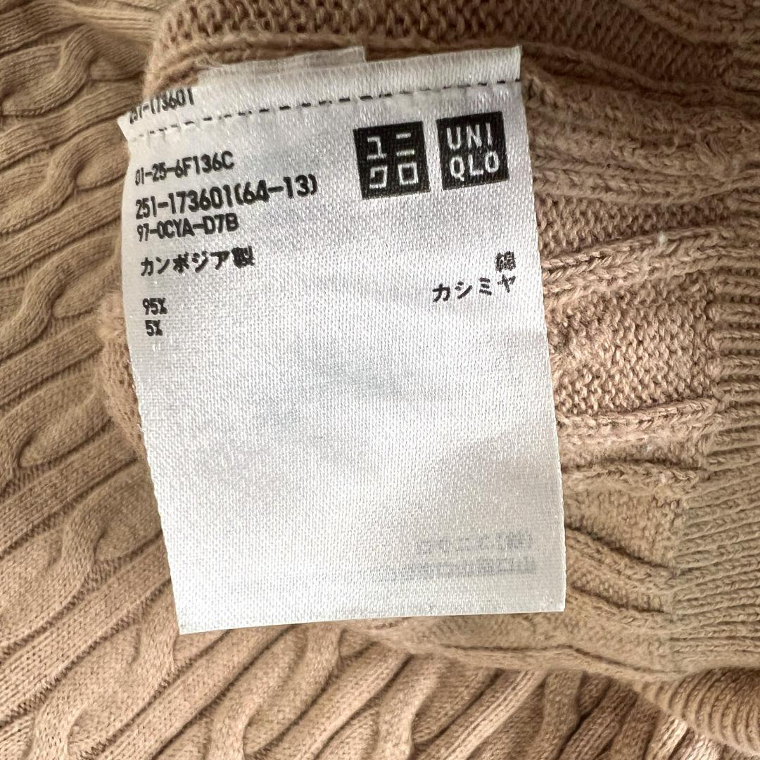 女性用のベージュ系のニットセーター トップスです。中古品ですが目立つ傷や汚れもなく、まだまだ使えます。古着 ユニクロ コットンカシミヤケーブルセーター(長袖) カシミヤ混 カシミア
