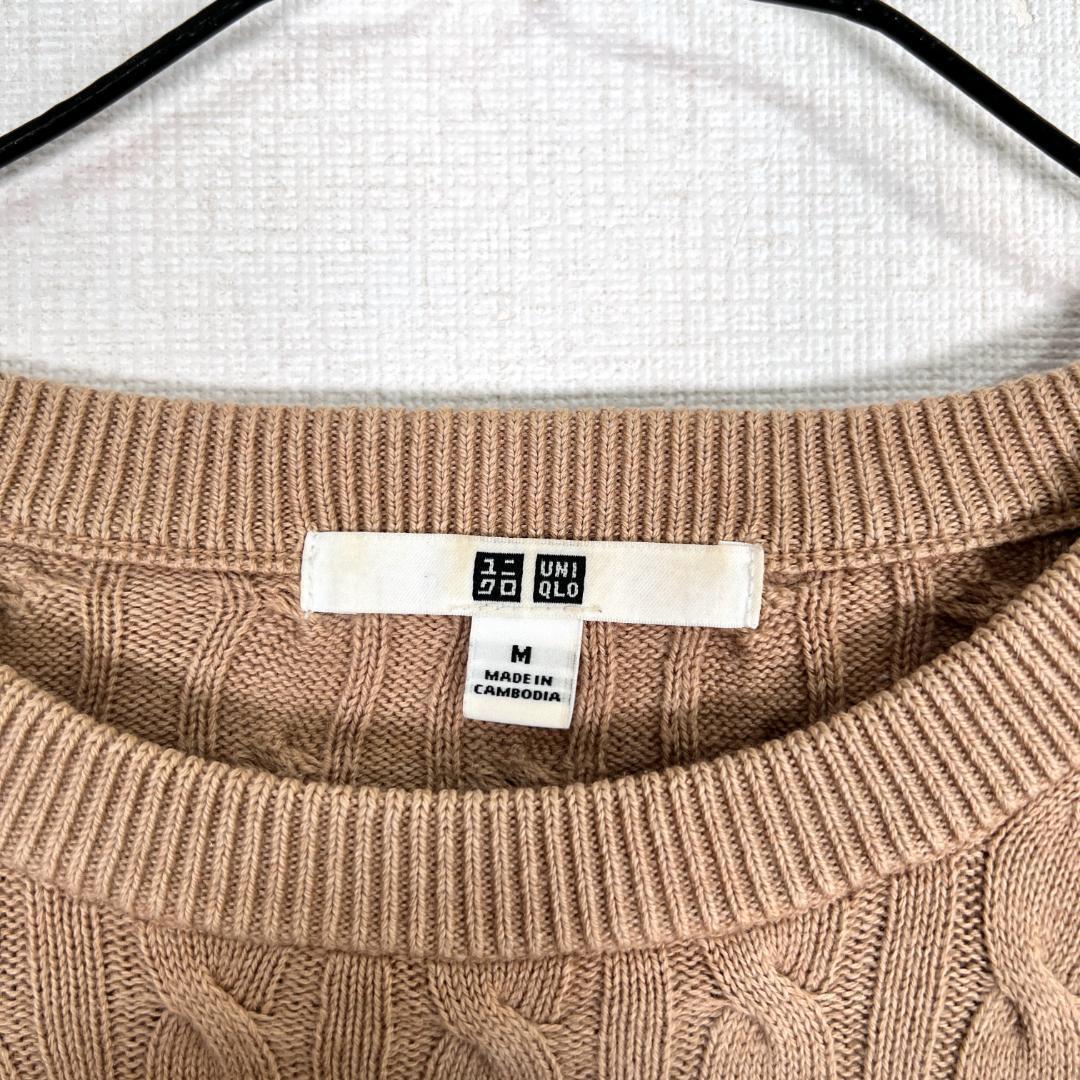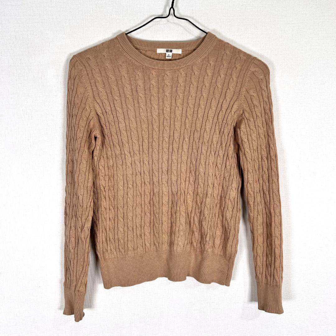 【UNIQLO】ユニクロ ベージュ ケーブル編み 長袖 ニットセーター トップス 女性用 レディース Mサイズ【a031】