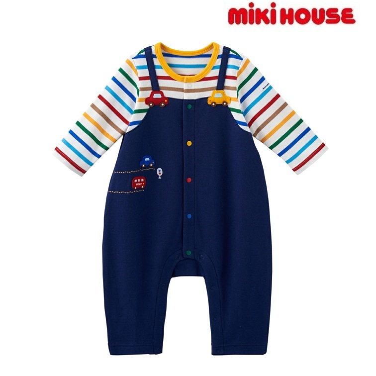 即決です!【ミキハウス】新品未使用♪mikihouse 80cm 75cm~85cm セパレート風 カバーオール ベビー キッズ ロンパース サロペット 男の子