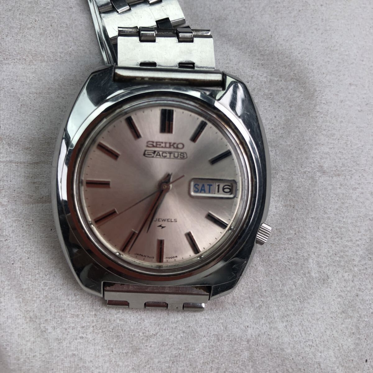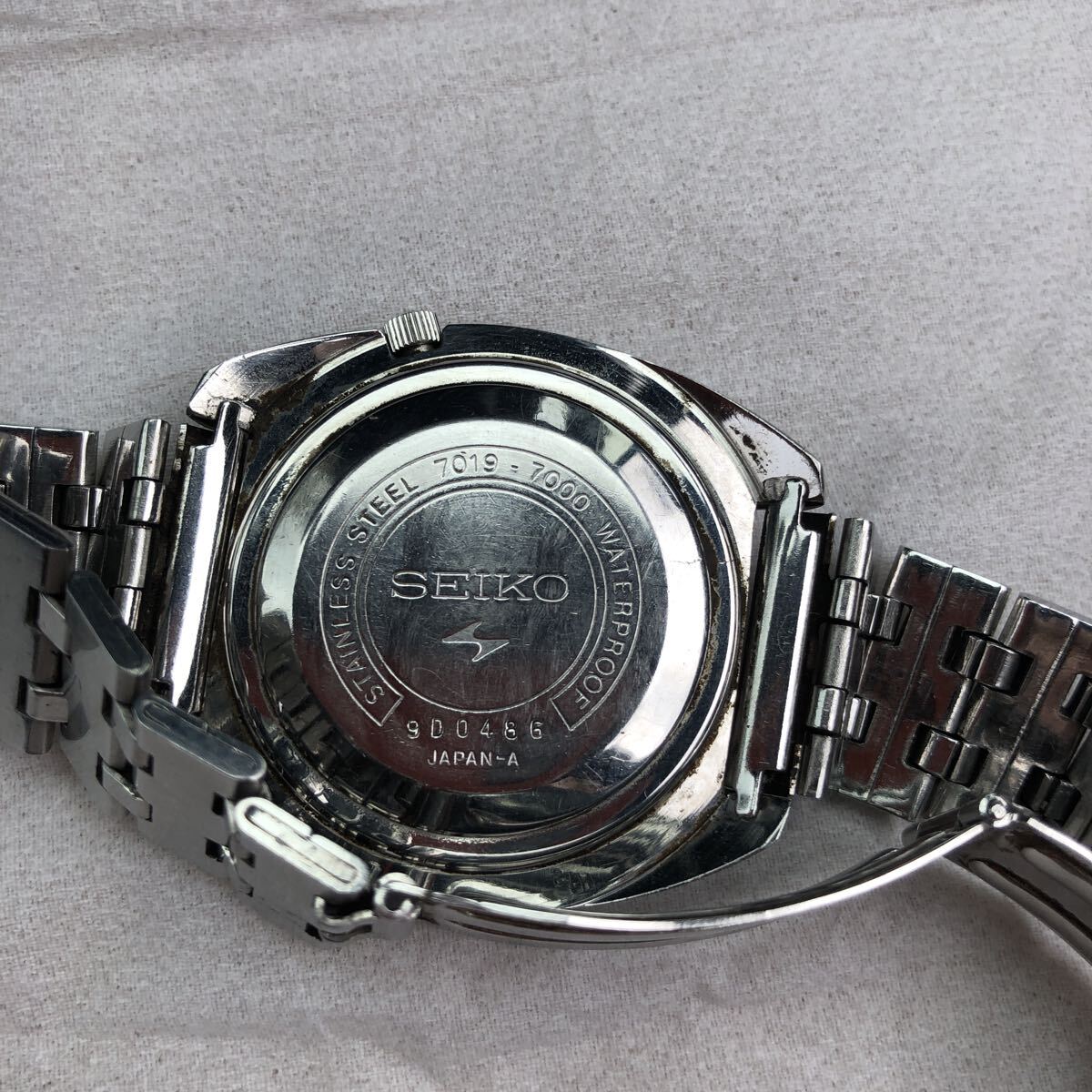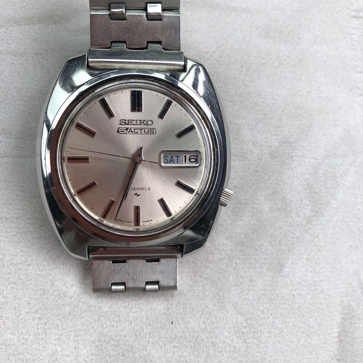 ご覧いただきありがとうございます。SEIKO セイコー 5ACTUS 7019-7000 腕時計 デイデイトカレンダー 動作しますが精度は不明です。叔父のコレクションですが家族誰も興味ありませんので生活の為に出品する事にしました。ノークレーム、ノーリターンでお願いします。同梱は同日終了分のみ可です。発送はゆうパック60サイズ元払いのみです。その他いろいろ出品しておりますのでどうぞご覧下さい。
