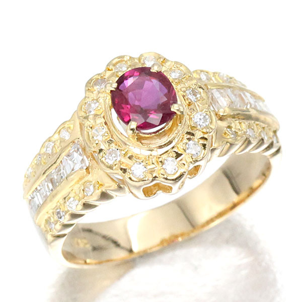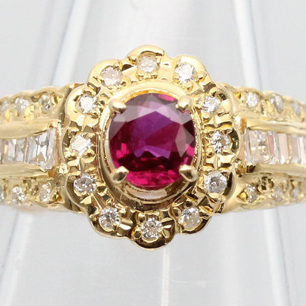K18YG ルビー ダイヤモンド リング 10号 指輪 宝石 ジュエリー アクセサリー レディース 女性 誕生石 7月 誕生日 プレゼント