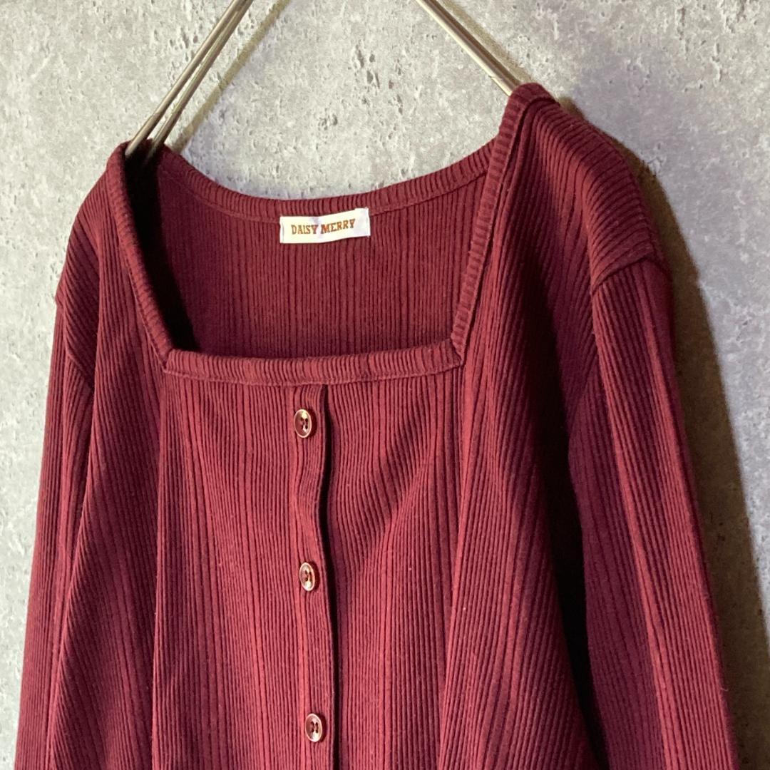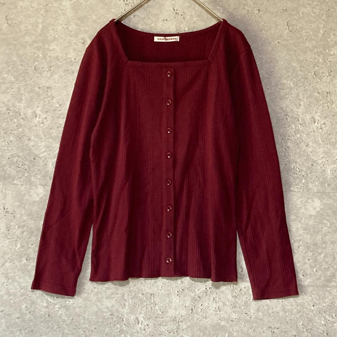 デイジーメリー(L)リブカーディガン*長袖*綿混*スクエアネック*シンプル*無地
